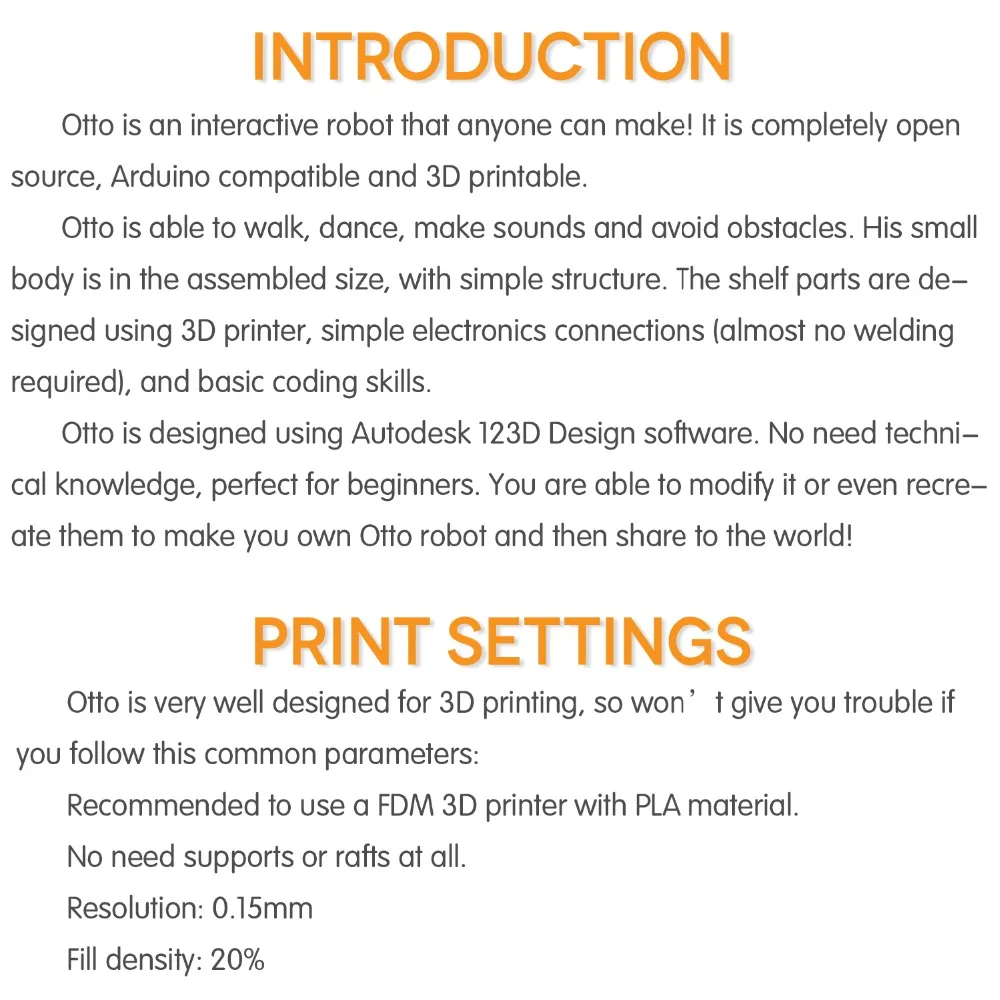 This is just starter kit for OTTO Robot, No any Body Printer Parts!!!