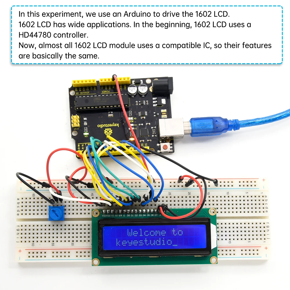 This LCD is ready-to-use because it is compatible with the Arduino Liquid Crystal Library.