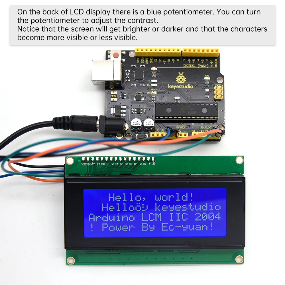 The original 2004 LCD needs 7 IO ports to be up and running, ours is built with Arduino IIC/I2C interface, saving you 5 IO ports.