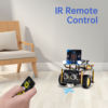 Launched by KEYES group, Keyestudio micro:bit smart car integrates obstacle avoidance, line tracking and IR and Bluetooth control. It is made up of DC geared motors, wheels , sensors and acrylic boards. In addition, it cooperates a passive buzzer with music play function, 4 pcs WS2812RGB LEDs and 2 pcs RGB lights.