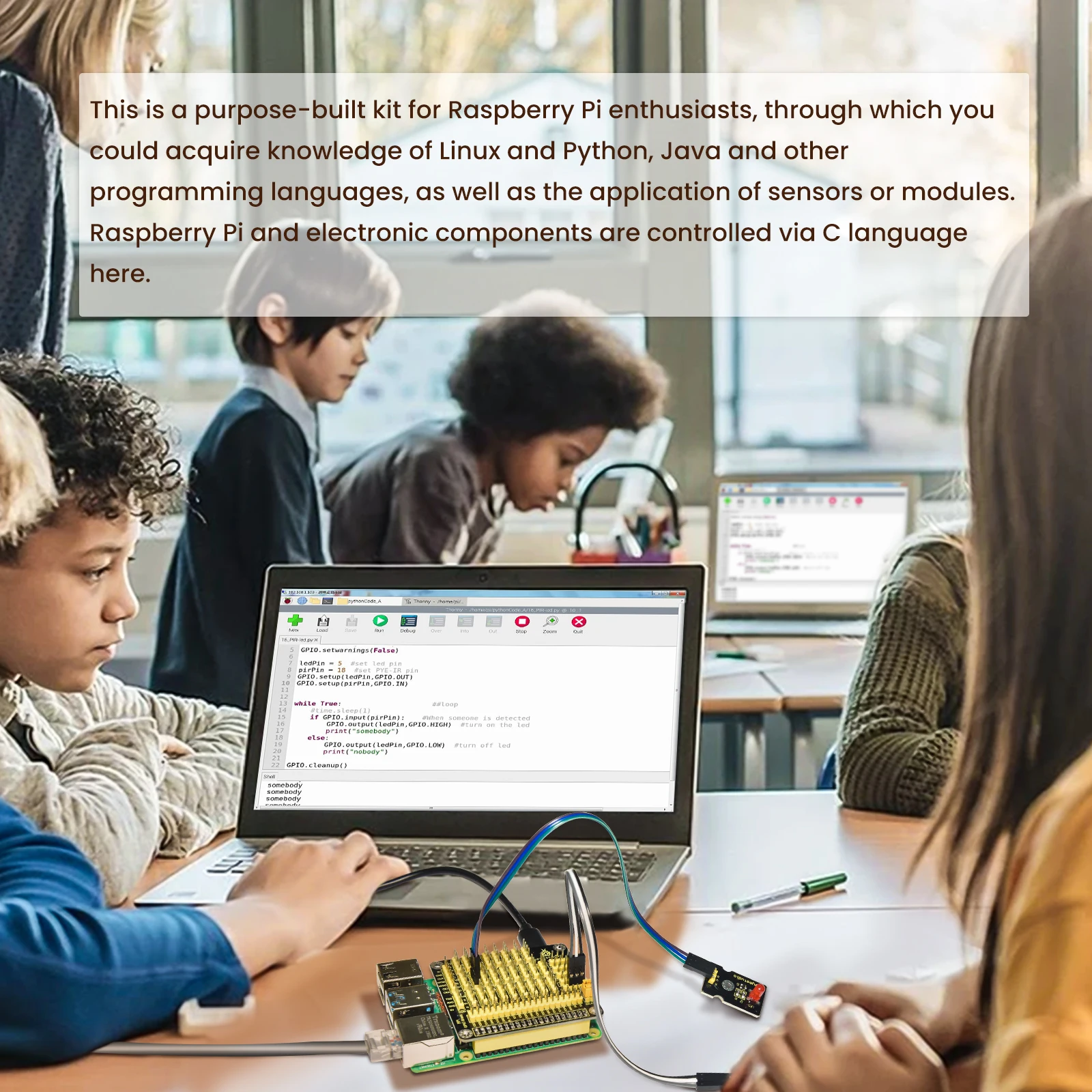 And this is a purpose-built kit for Raspberry Pi enthusiasts, through which you could acquire knowledge of Linux and Python, Java and other programming languages, as well as the application of sensors or modules.