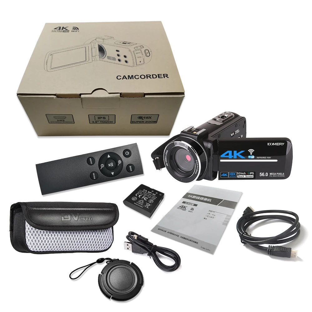 KOMERY 4K كاميرا فيديو 56MP واي فاي تسجيل الدخول ل Youbute المشهد شاشة تعمل باللمس للرؤية الليلية كاميرا زووم رقمية