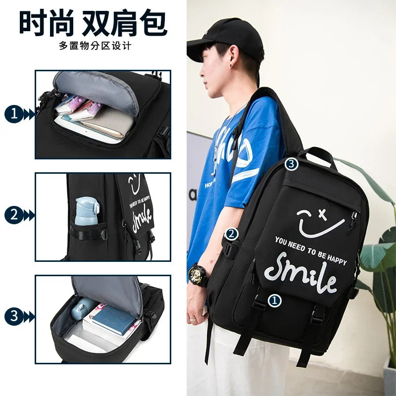 Large capacity quirky expression backpack, leisure travel backpack, sports minimalist unisex bag for men and women