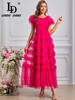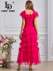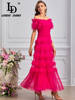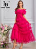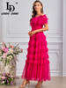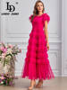 LD LINDA DELLA Summer 2024 luxury Designer Dress for women Temperamen Vintage Polka Dot Print Net Yarn Cascading Ruffle Dresses