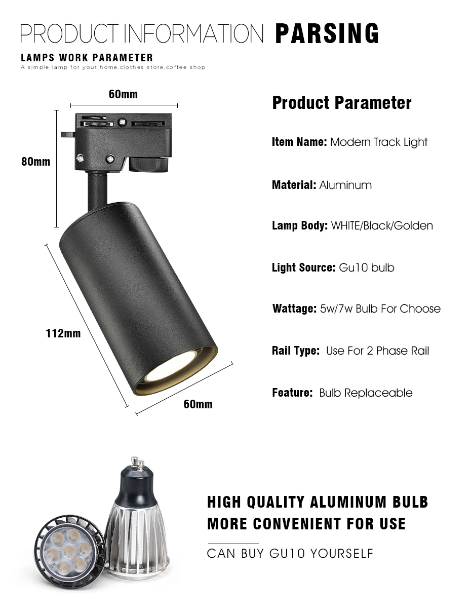 GU10 أضواء المسارات لمبة استبدال Led السكك الحديدية ضوء أسود/أبيض/ذهبي بقعة ضوء السقف 5 واط استبدال مصباح غرفة المسار الهالوجين