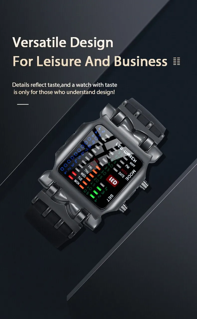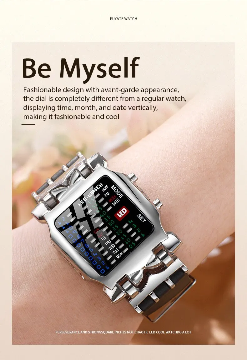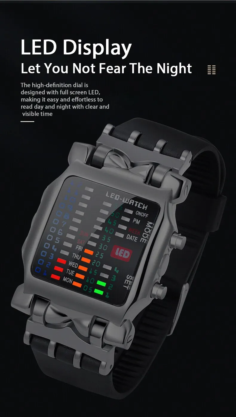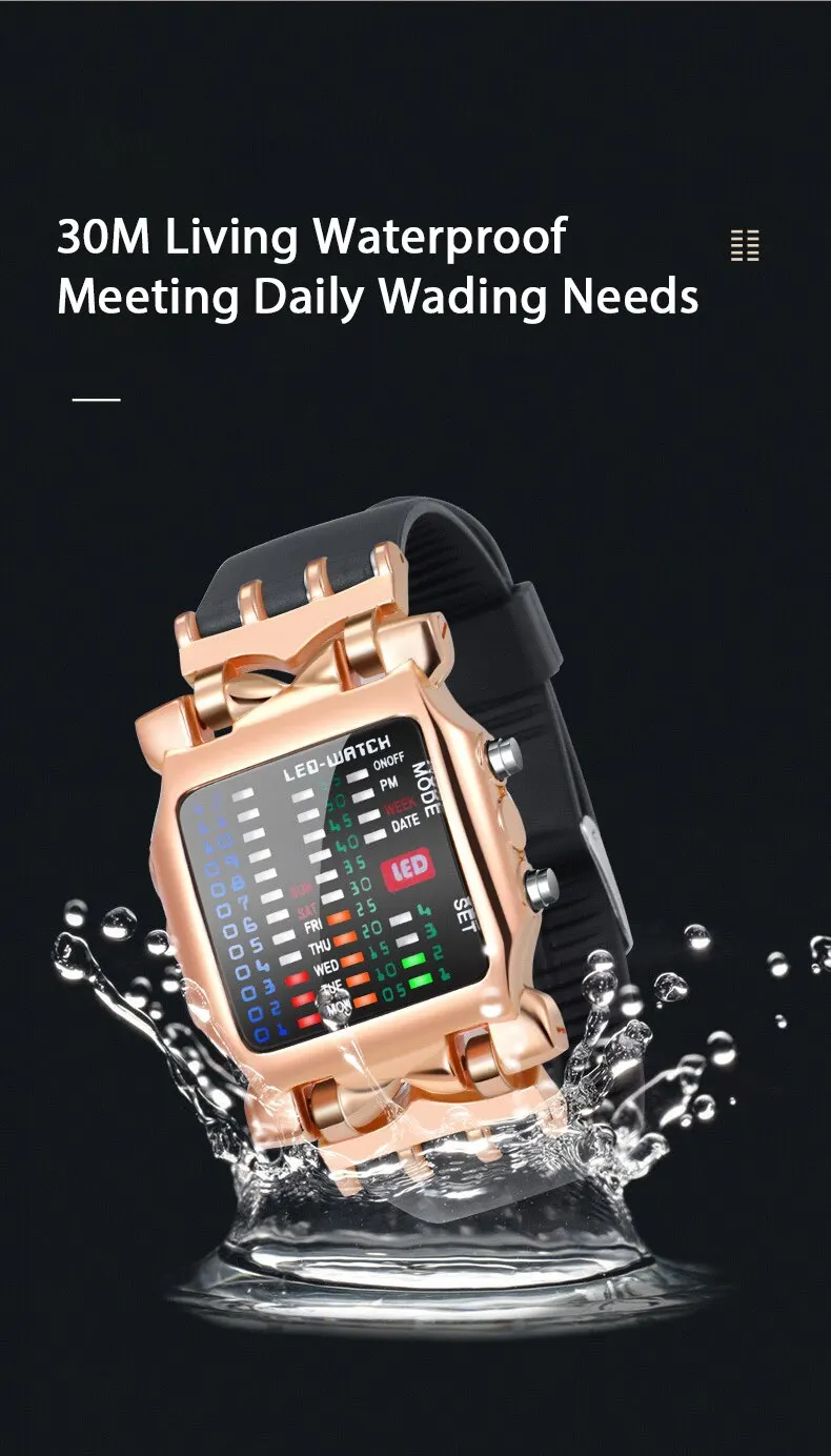 ساعة يد كوارتز عصرية مقاومة للماء بإضاءة LED ملونة، شريط مطاطي مزود بفتحات يناسب معصمك بسلاسة،