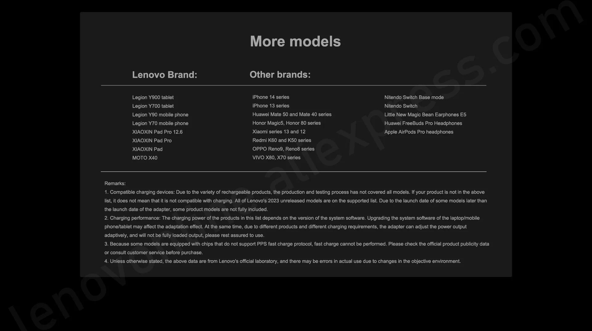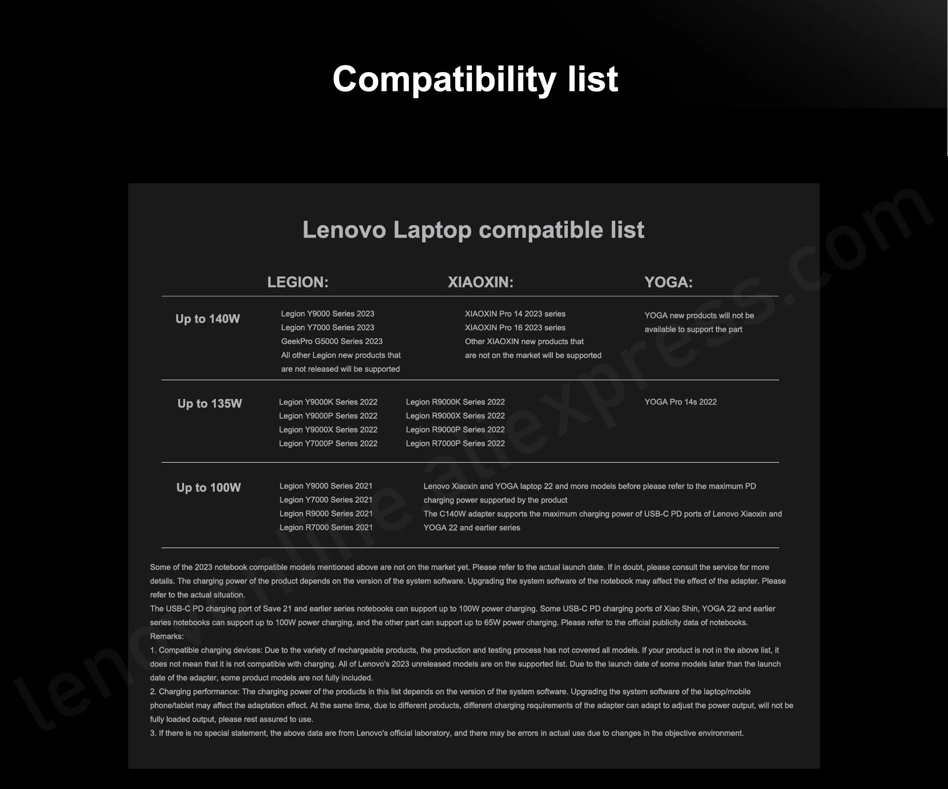 Lenovo Xiaoxin and YOGA laptop 22 and more models before please refer to the maximum PD charging power supported by the product