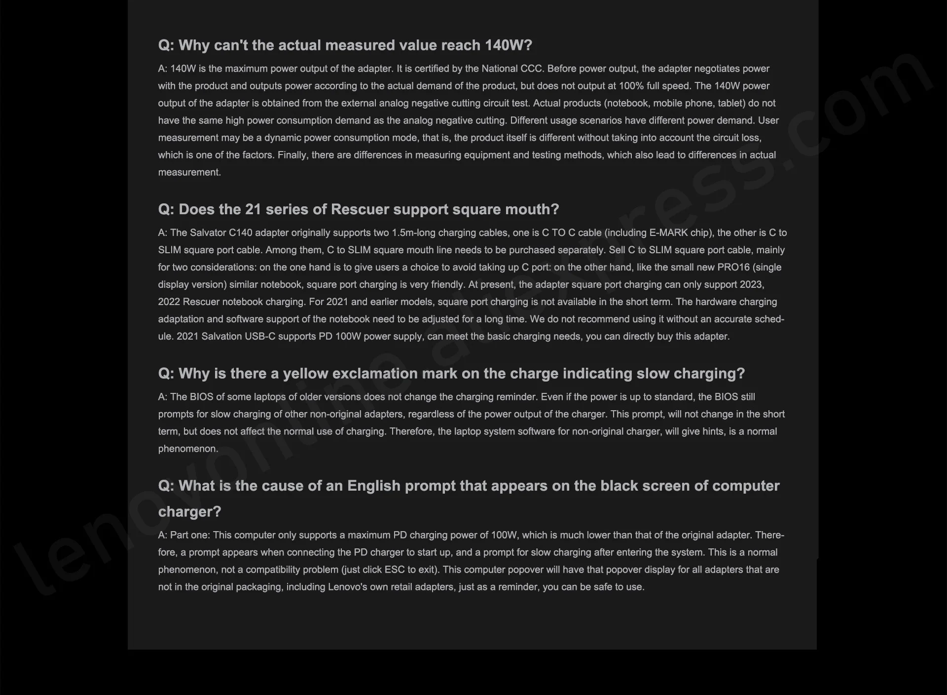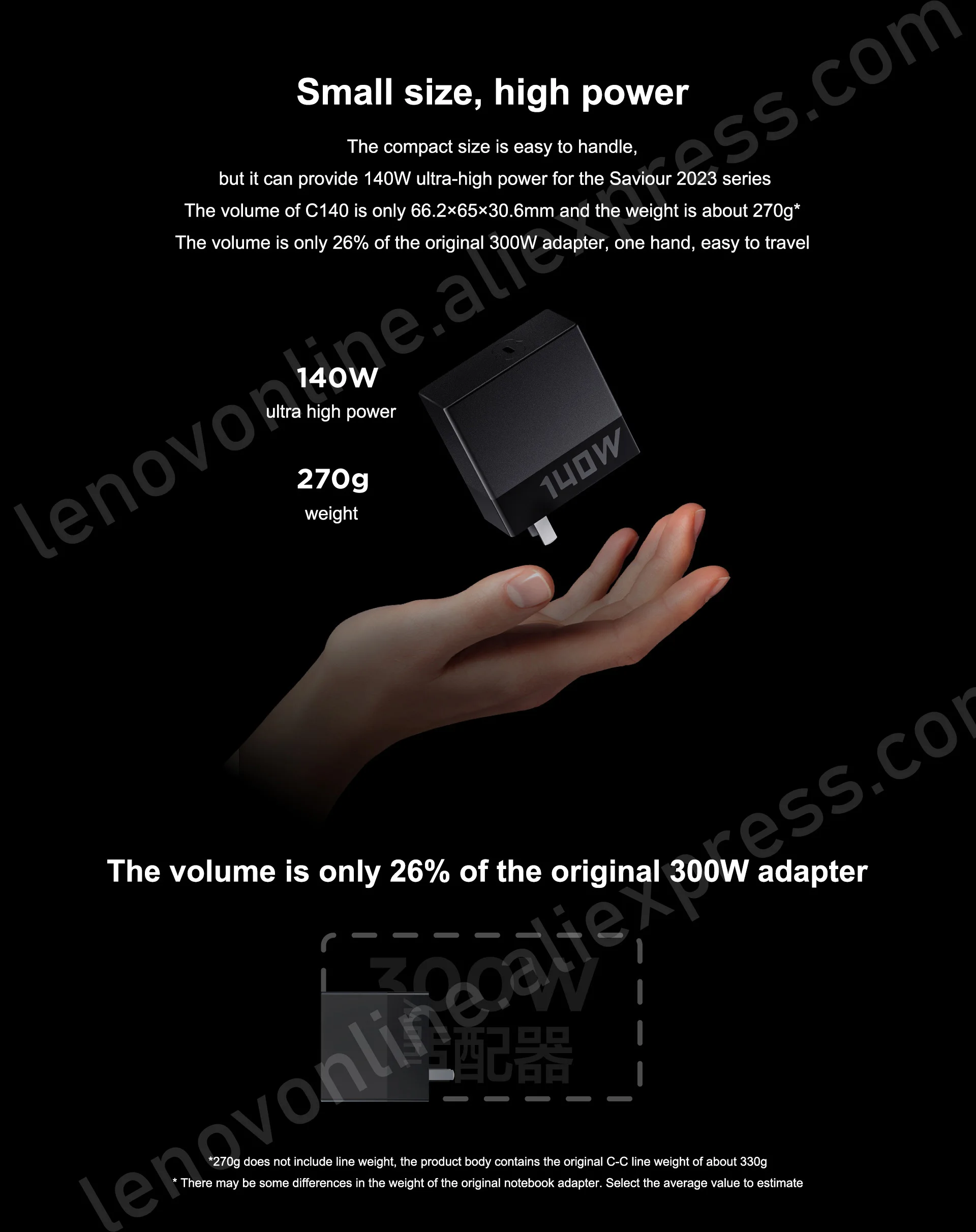 As for the actual measured value of the plug less than 140W, Lenovo’s official explanation is as follows: 140W is the maximum power output of the adapter, but not every product can reach 140W with the plug charging, because the adapter automatically adjusts to output the corresponding power value according to the actual needs of the product (system protocol of electronic products, required power, etc.) and the use of the environment, and will not be 100% full load output.