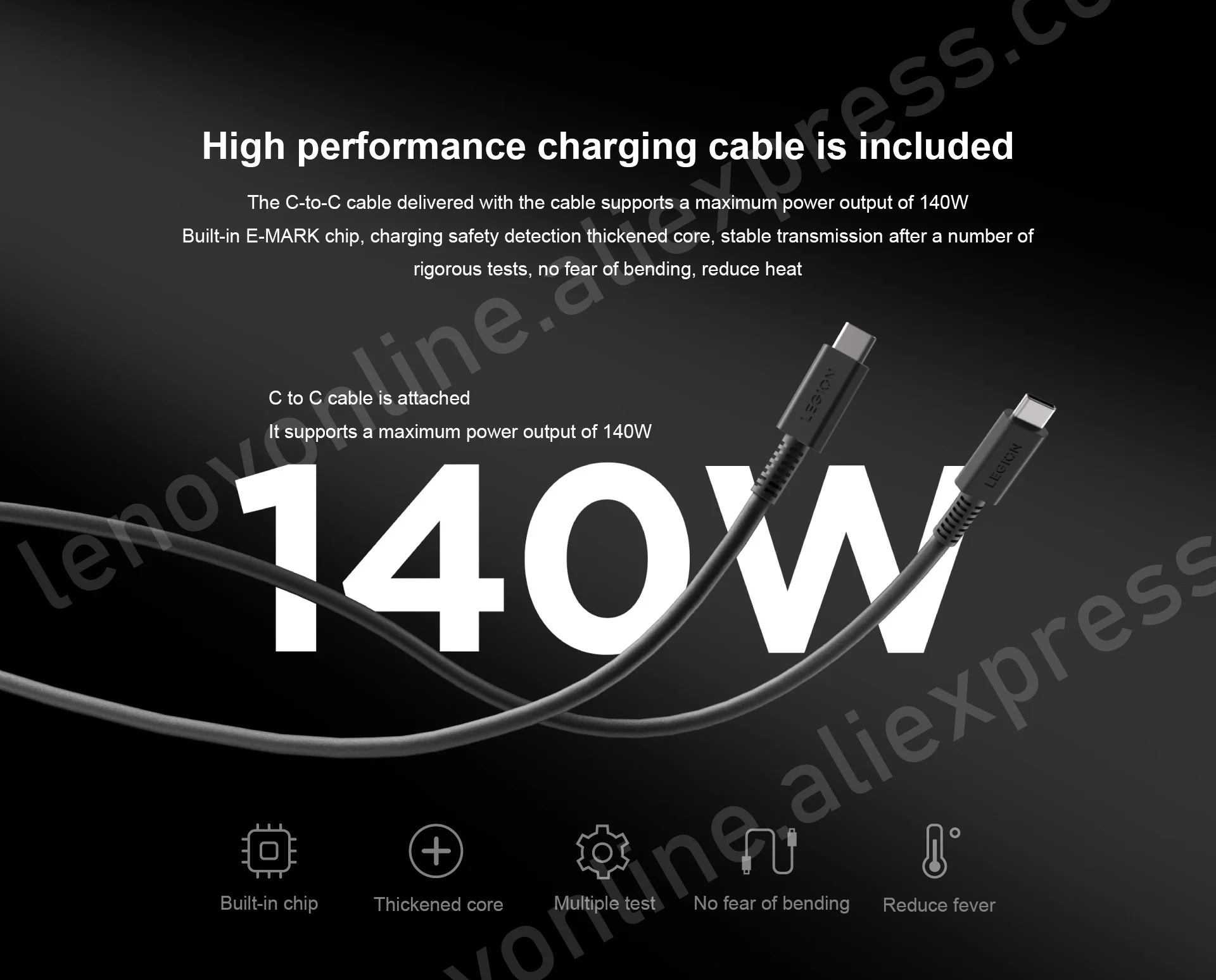 Lenovo Legion C140W 2023 GaN Adapter 140W Output Power Small Portable PD3.1 Type-C C To C Cable for Legion Phone Tablet Laptop