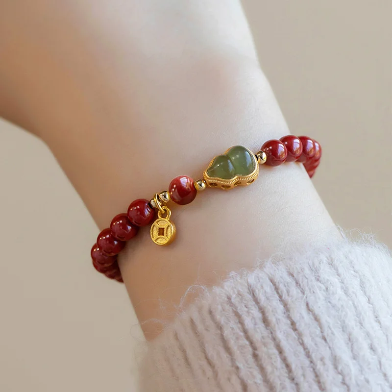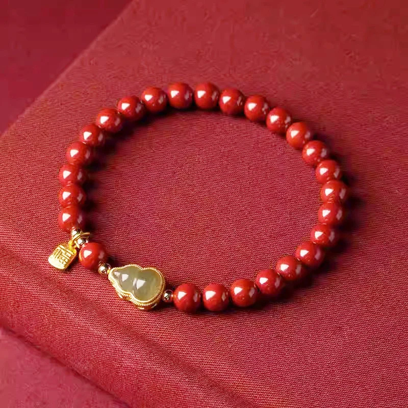 Lucky Imitation of Hotan Jade Cinnabar Red Gold Color Bead Natural Stone Beaded Bracelet for Women Bracelet Party Good Luck Gift
