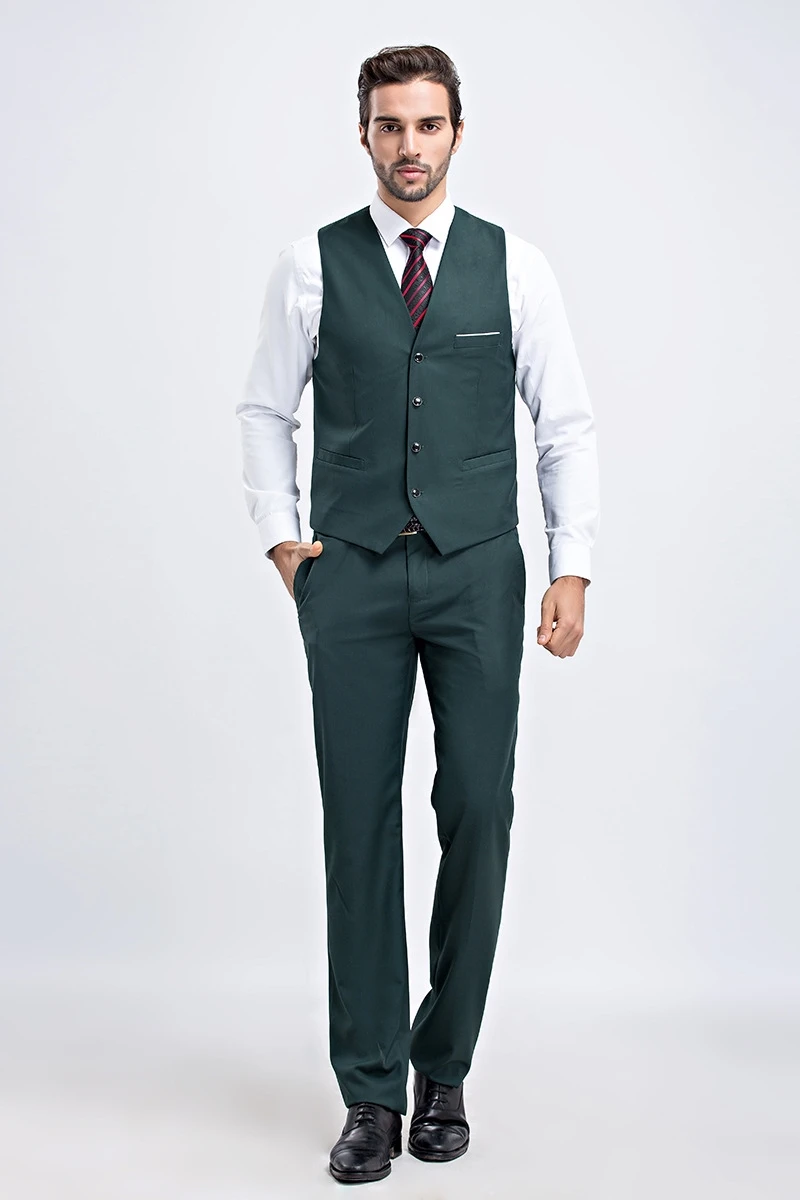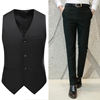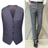 M-6XL Men’s Casual Business Solid Color Vest and Pants Groom Wedding Dress Waist Coat Trousers