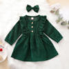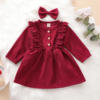 Ma & Baby فستان بناتي سروال قصير موضة الربيع والخريف, Ma & Baby فستان بناتي موضة الربيع والخريف بكم طويل مع كشكشة