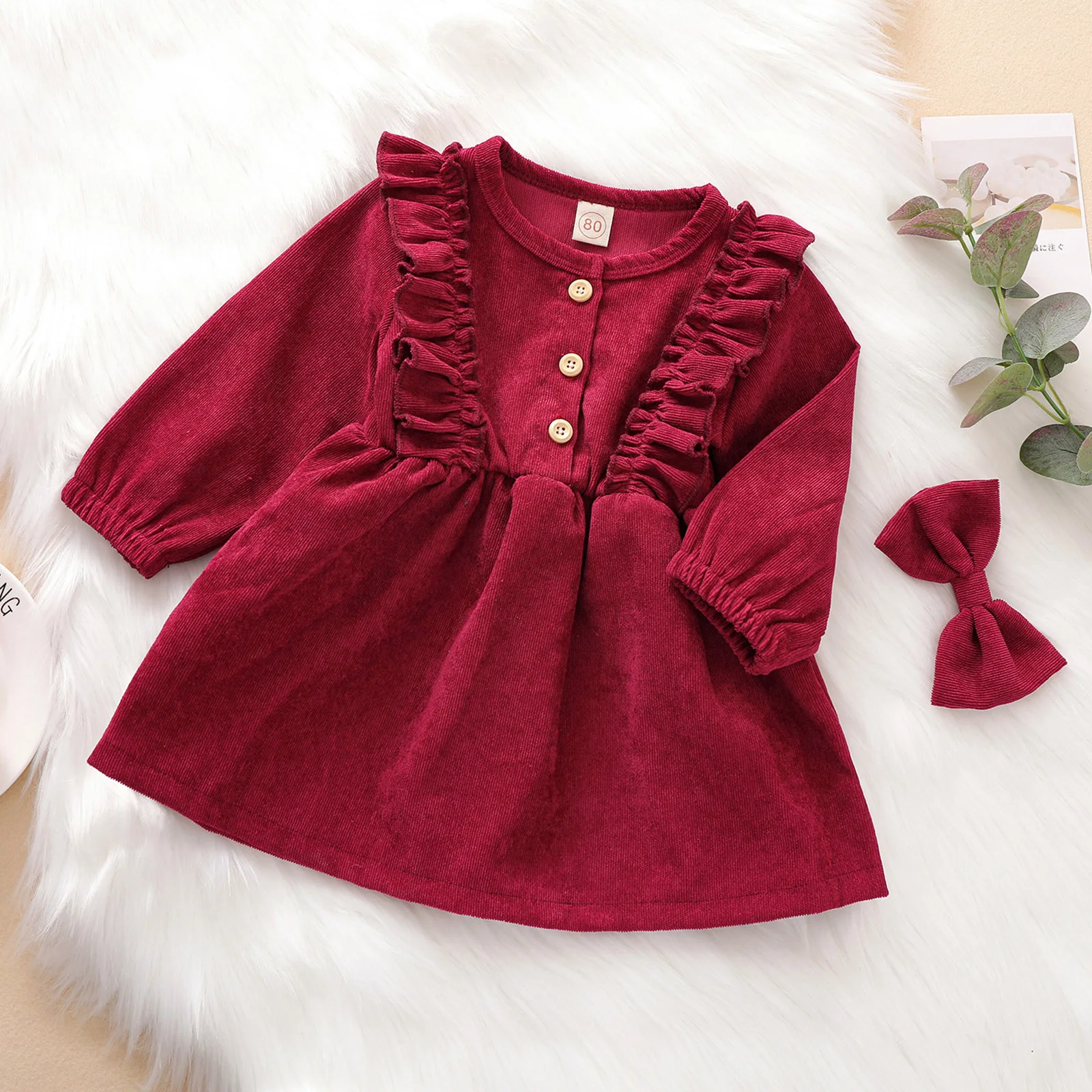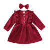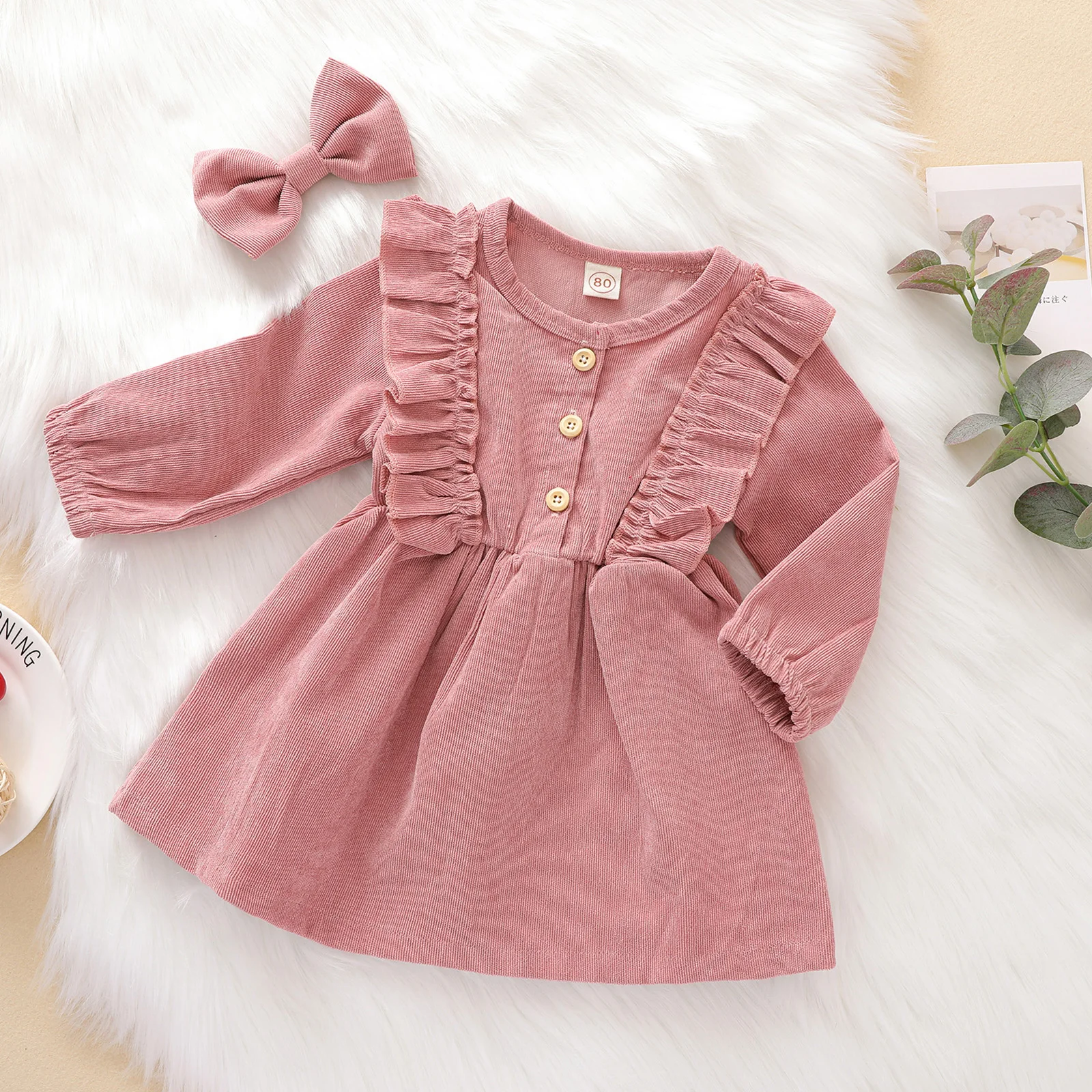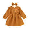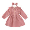 Ma & Baby فستان بناتي سروال قصير موضة الربيع والخريف, Ma & Baby فستان بناتي موضة الربيع والخريف بكم طويل مع كشكشة