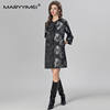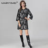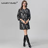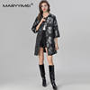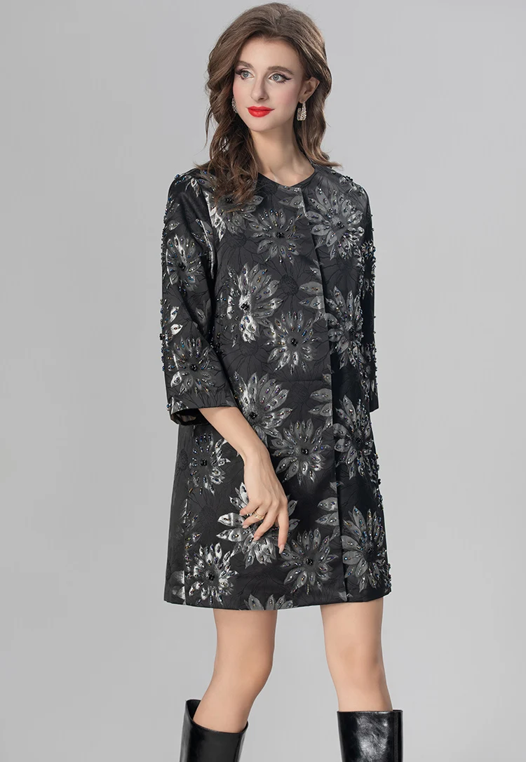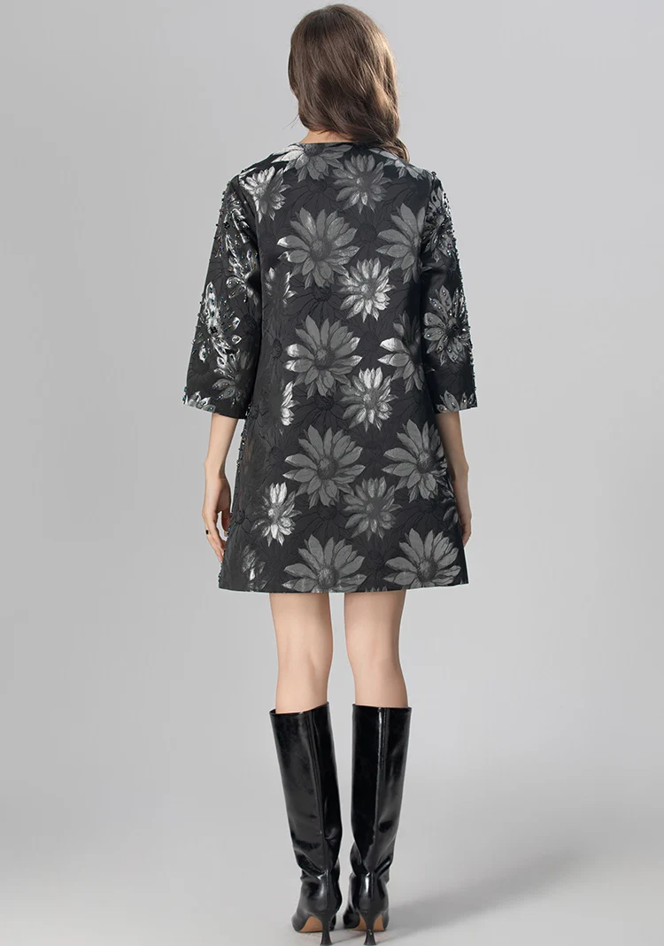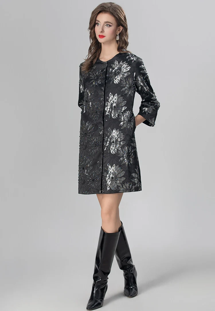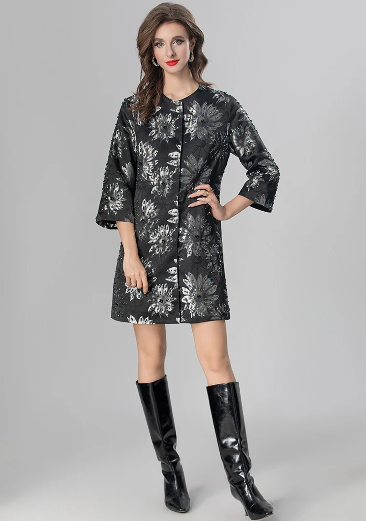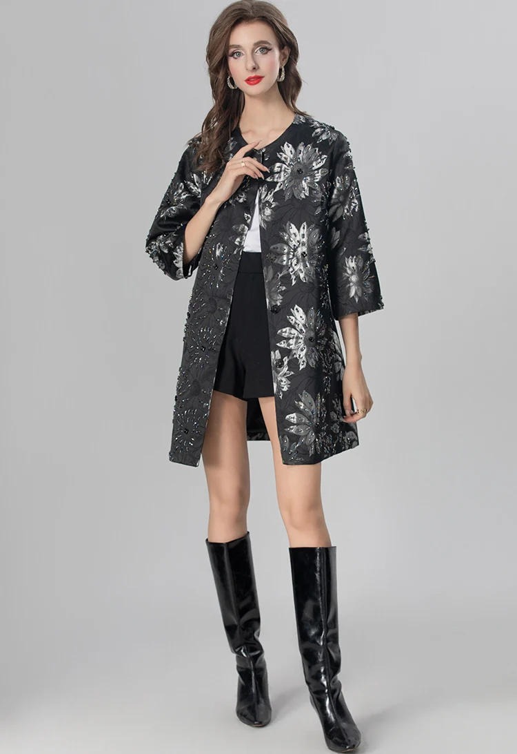 MARYYIMEI Autumn and Winter Women’s Coat Three Quarter Sleeve Single-Breasted Beading design Fashion Streetwear Black Overcoat