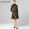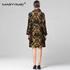 MARYYIMEI Fashion Designer Autumn and Winter Women’s Coat Turn-Down Collar Double Breasted Vintage Print Overcoat