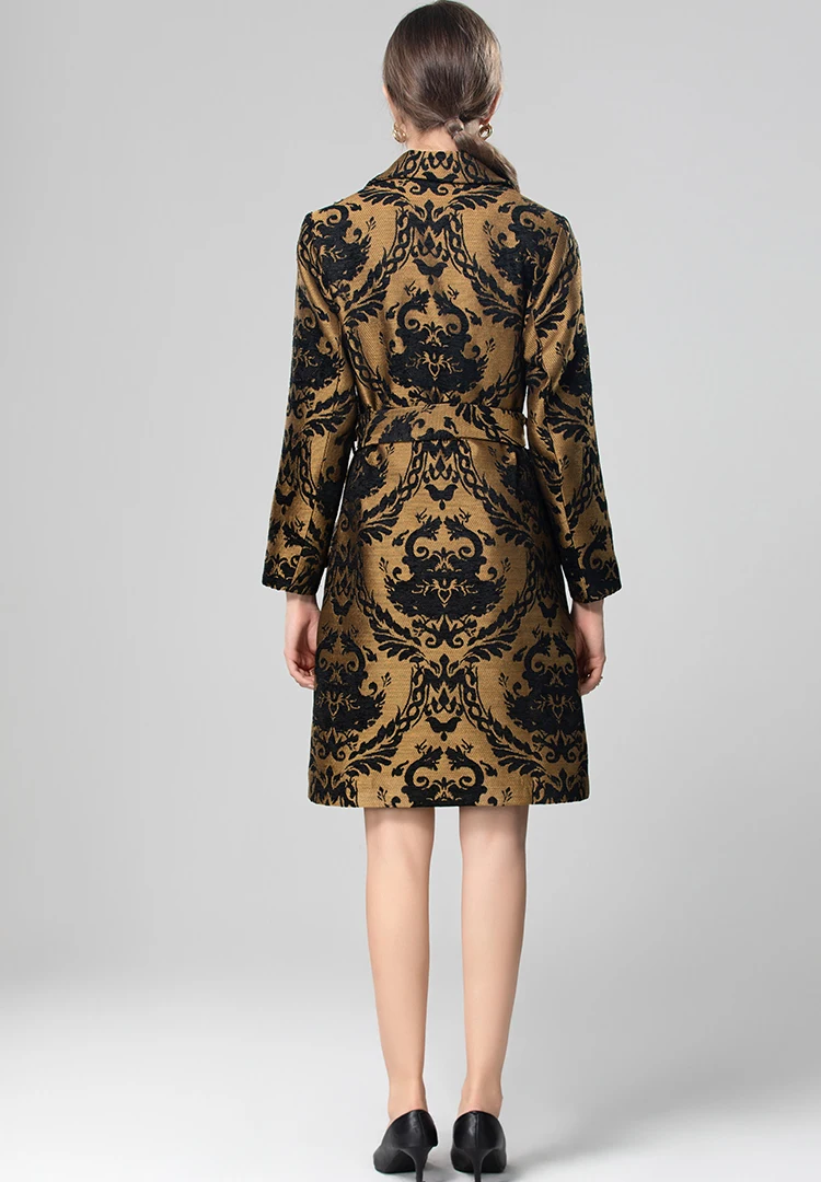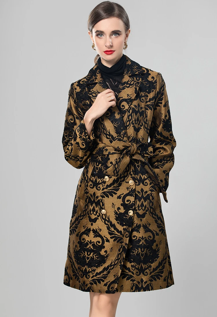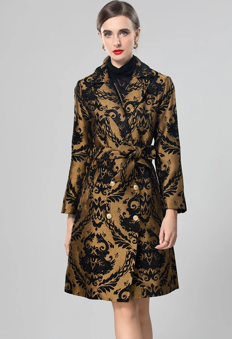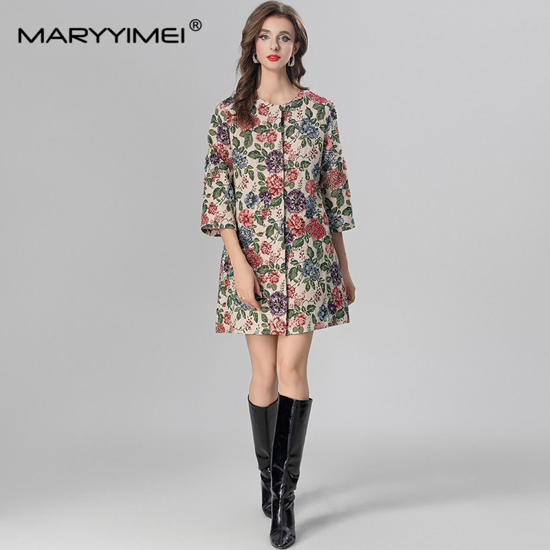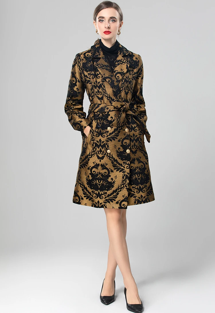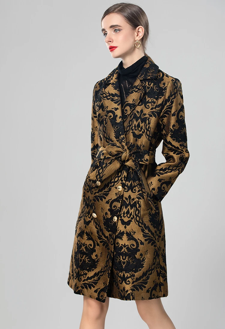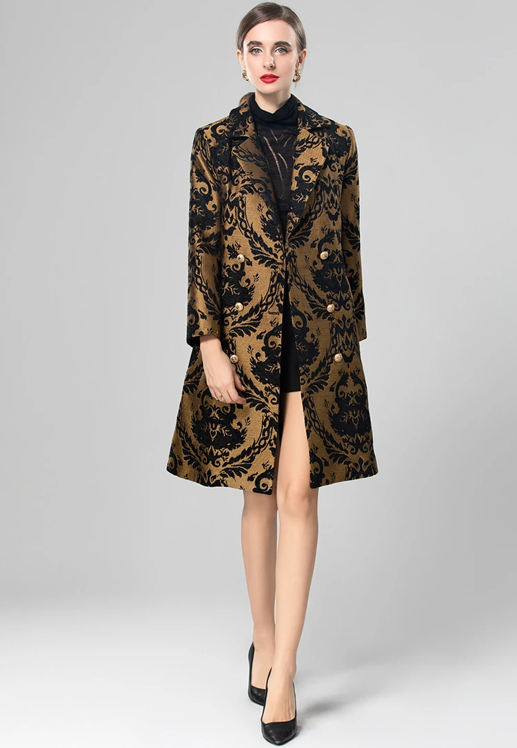 MARYYIMEI Fashion Designer Autumn and Winter Women’s Coat Turn-Down Collar Double Breasted Vintage Print Overcoat
