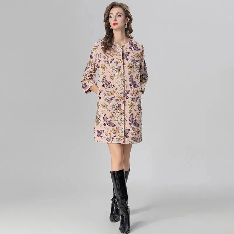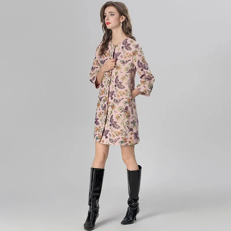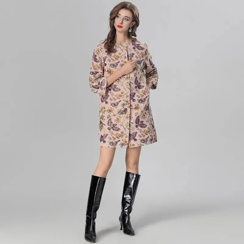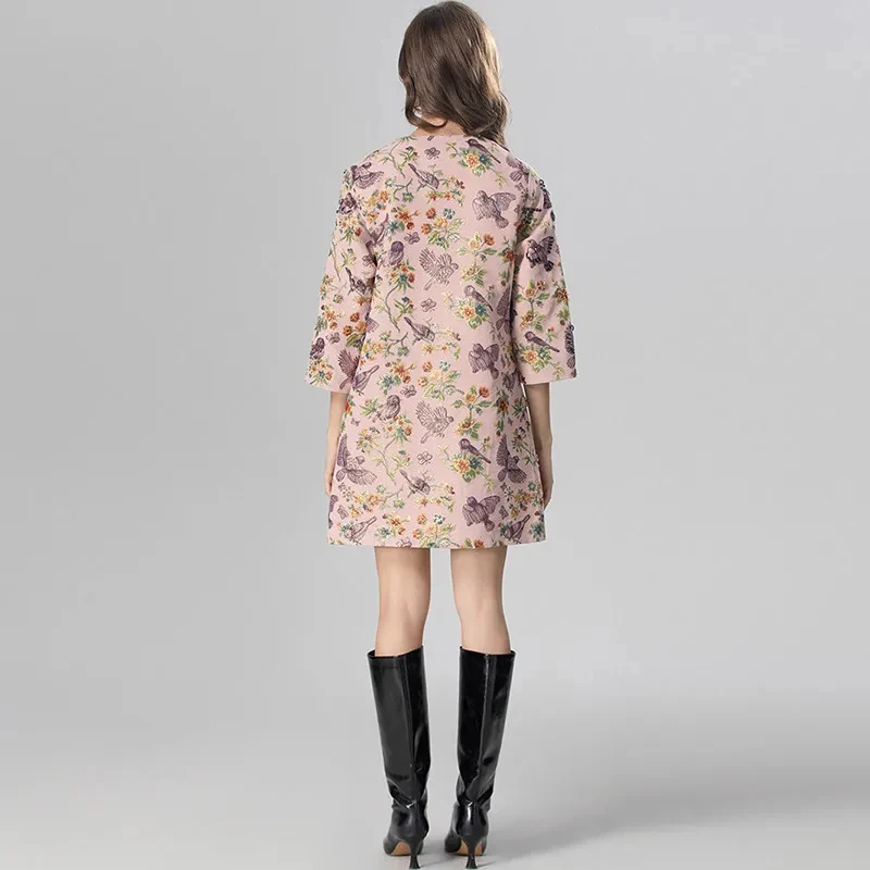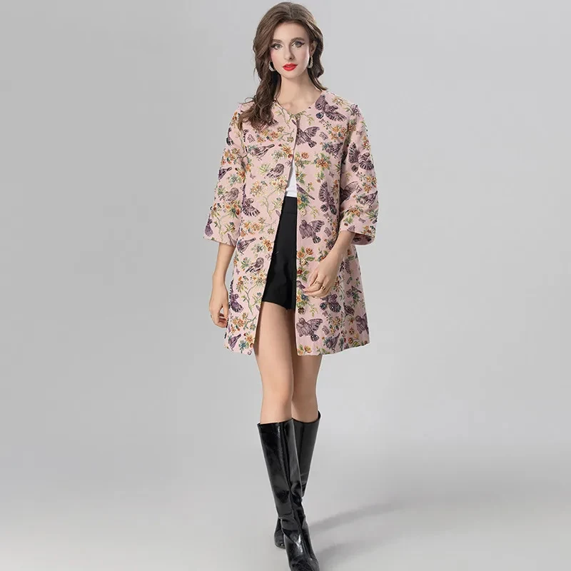 MARYYIMEI Women’s Daily Casual Coat Three Quarter Sleeve Single-Breasted Beading Flower and bird patterns Short Overcoat