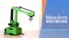 MaxArm is an open-source robotic arm powered by ESP32 microcontroller. The linkage mechanism designed body are equipped with high-quality bus servos and suction nozzle. Using inverse kinematics technology, MaxArm can execute variety of tasks such as object sorting, picking, transporting and stacking.