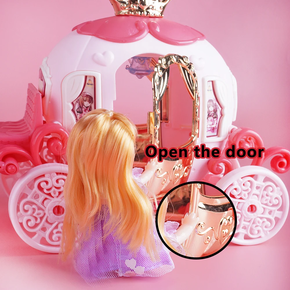 Pumpkin Cart Princess Dollhouse Carriage Furniture Model Doll Girl Toy Gift Puzzle Play