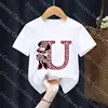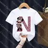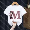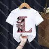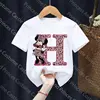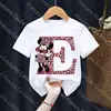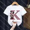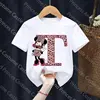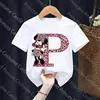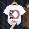 Minnie Children Cotton T-Shirts Letter A-Z Name Combination Disney Kawaii Cartoons Clothes Kids Boy Girl Tee Shirts Casual Tops
