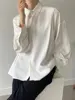 Shirt Top is a versatile piece that can be dressed up or down for any occasion. The loose fit provides comfort and ease of movement, while the buttoned front adds a touch of sophistication. The pleated details and lapel collar give a polished look to the overall design. This blouse is available in a solid color design that can easily be paired with various bottoms, such as jeans, skirts, or trousers, for a stylish yet effortless look.