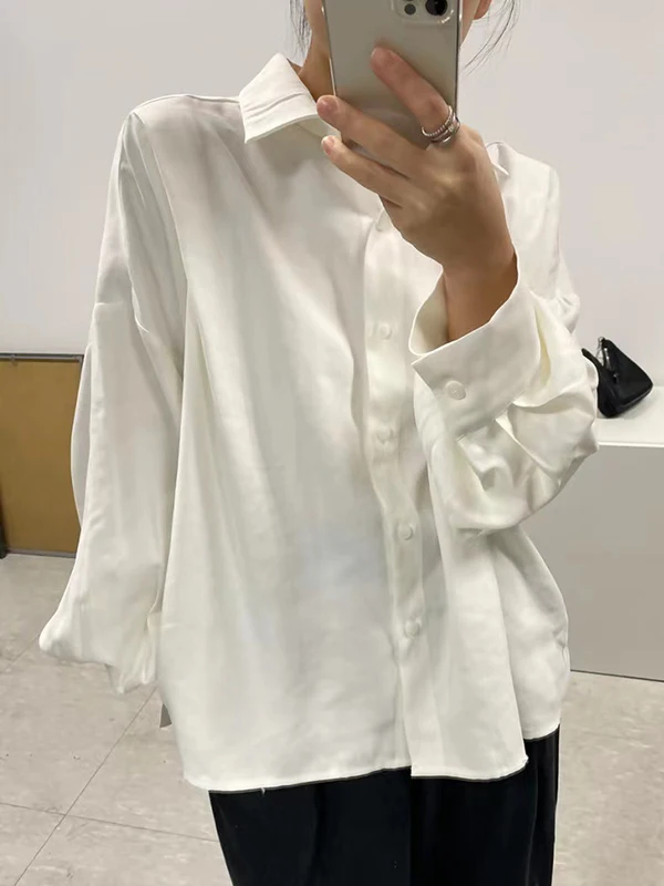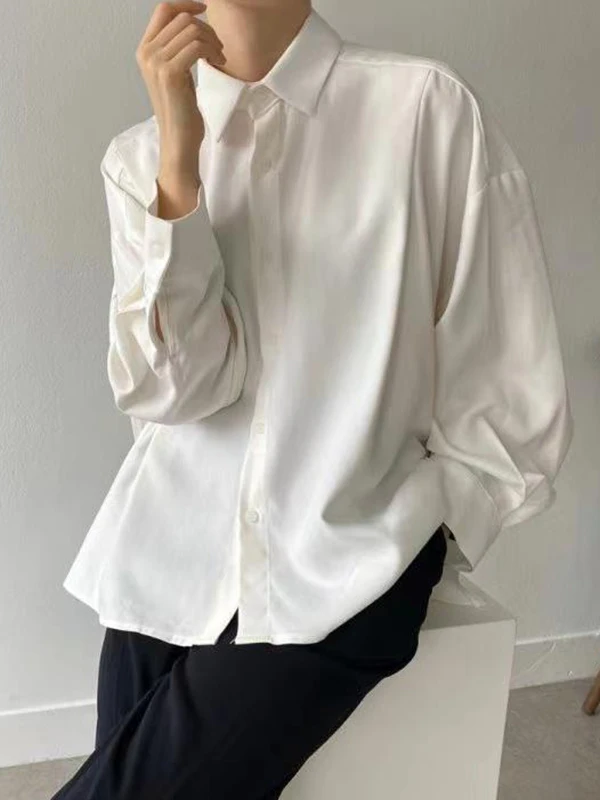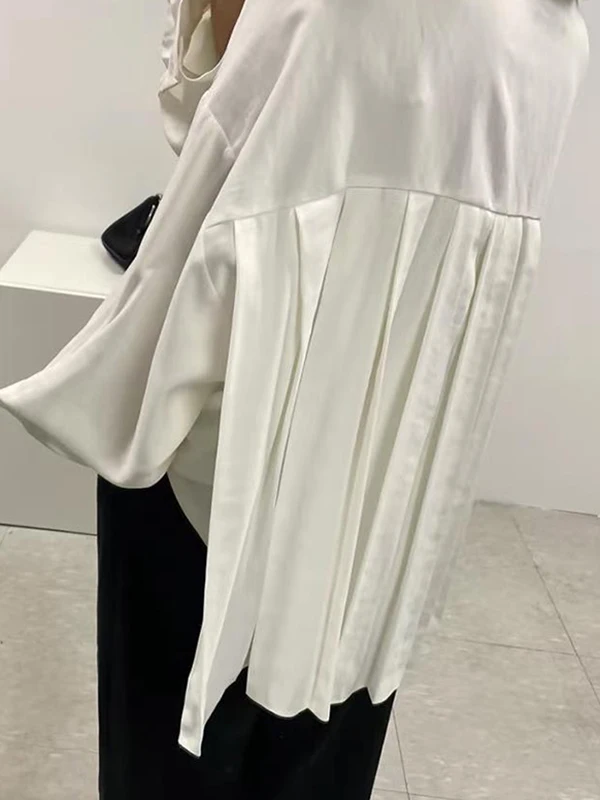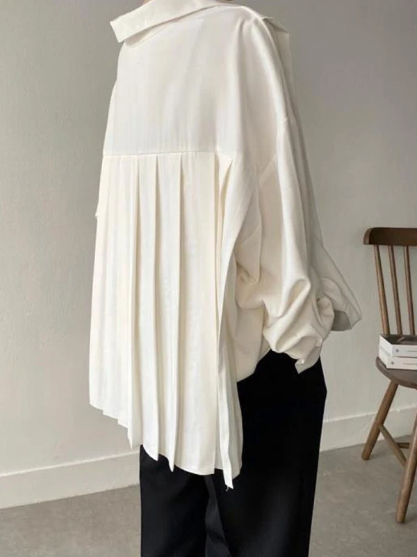 Shirt Top is a versatile piece that can be dressed up or down for any occasion. The loose fit provides comfort and ease of movement, while the buttoned front adds a touch of sophistication. The pleated details and lapel collar give a polished look to the overall design. This blouse is available in a solid color design that can easily be paired with various bottoms, such as jeans, skirts, or trousers, for a stylish yet effortless look.