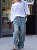 Womens Long Sleeves Loose Print Pleated office Blouses&shirts Tops