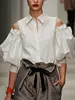 Womens Long Sleeves Loose Print Pleated office Blouses&shirts Tops