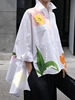 Womens Long Sleeves Loose Print Pleated office Blouses&shirts Tops