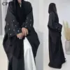 Moon Embroidery Open Abaya 2023 New Luxury Kimono Coat and Hijab Muslim Sets for Women Islam Retro Modest Clothing for Party