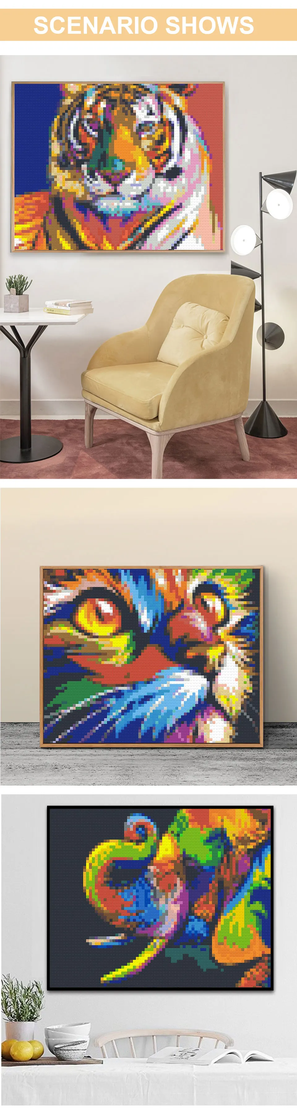 Mosaic Painting Home Decoration DIY Toy Building Block Wall Art Painting Lion Pixel Art Ideas Pop Wall Decoration Surprise Gifts