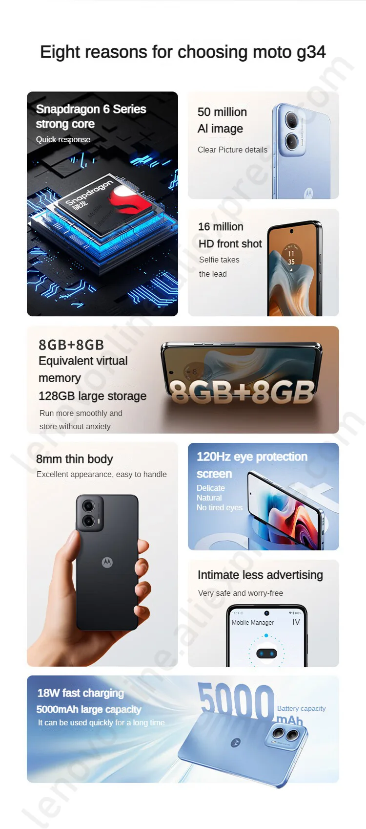 MOTOROLA Moto G34 5G 120Hz Octa-core 6nm Qualcomm Snapdragon 695 50 Million Pixel AI Image 5000mAh Fast Charge Long Battery Life