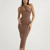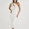 Mozision عالية الجودة شبكة واحدة الكتف عارية الذراعين ميدي فستان للنساء موضة الجوف خارج أكمام Ruched فستان طويل Vestido