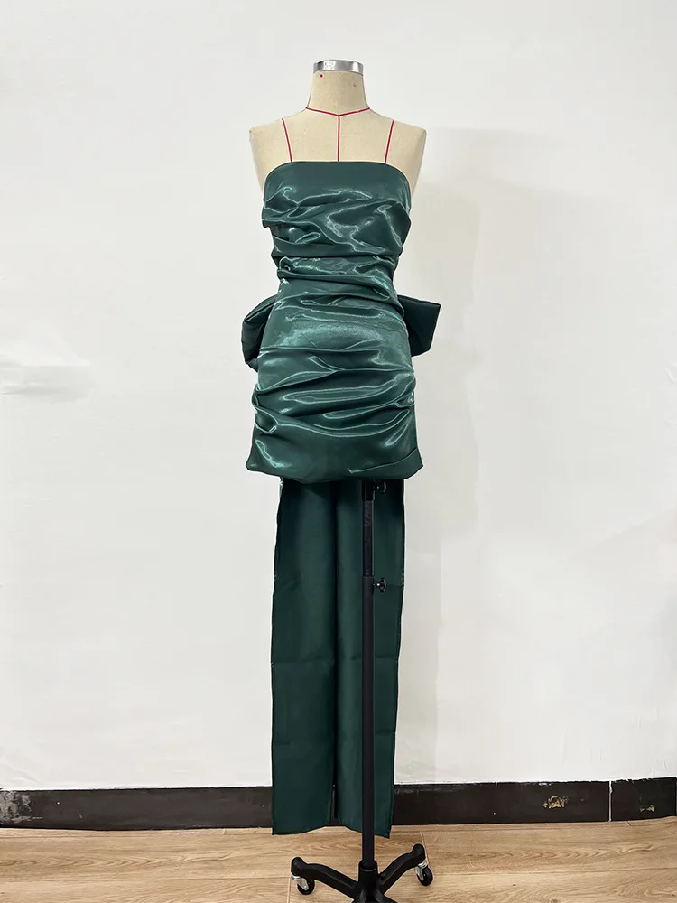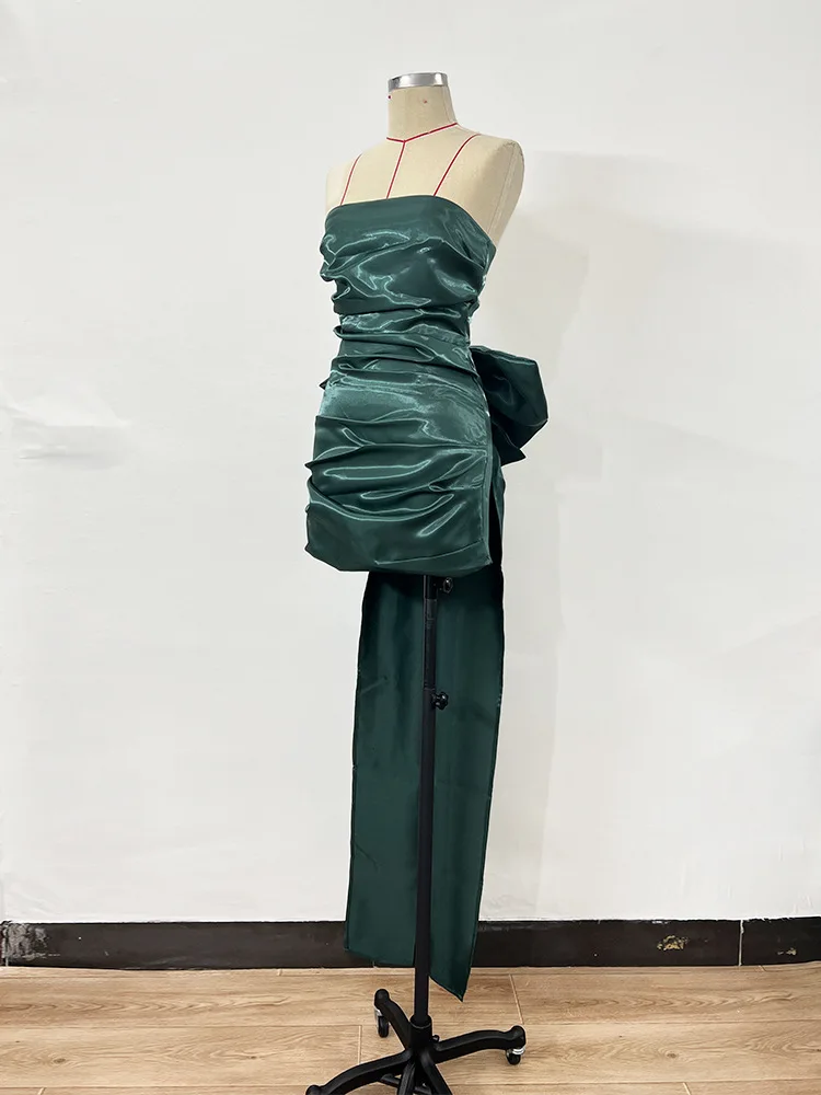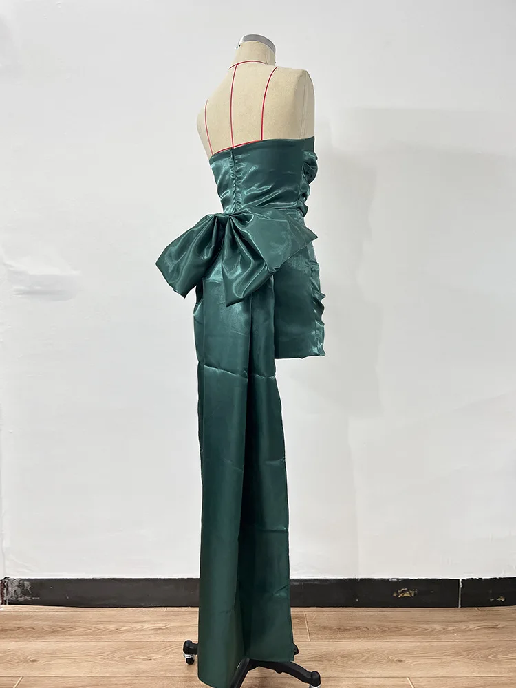 Mozision Elegant Strapless Backless Bow Maxi Dress For Women Fashion Off-shoulder Sleeveless Bodycon Club Party Evening Dress