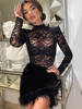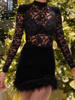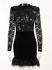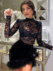 Mozision Lace Print See Through Sexy Mini Dress Women Autumn Winter New Half High Collar Sheer Long Sleeve Bodycon Party Dress