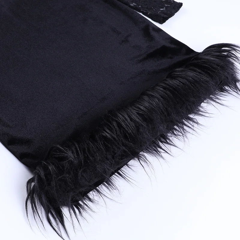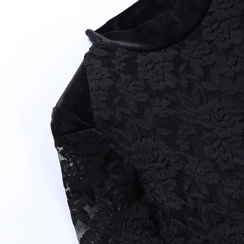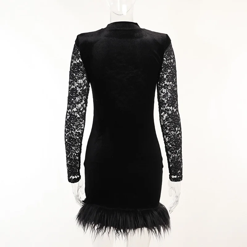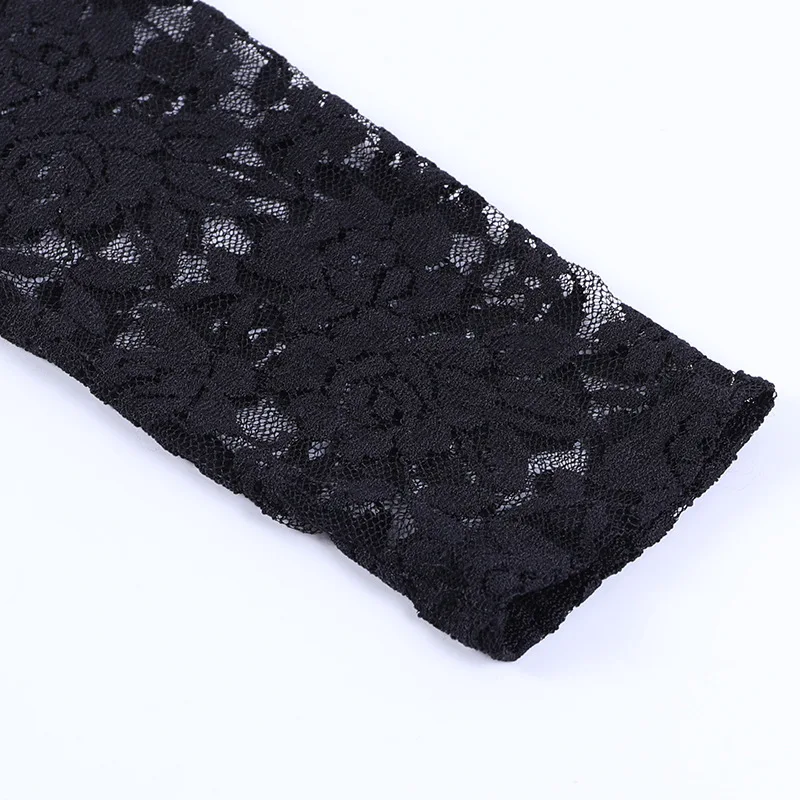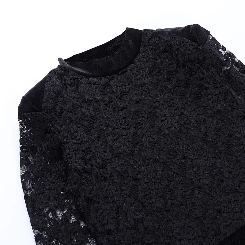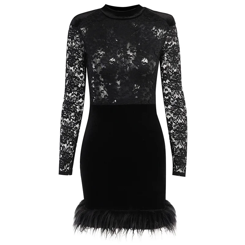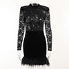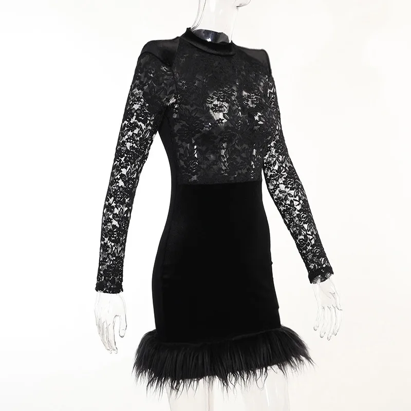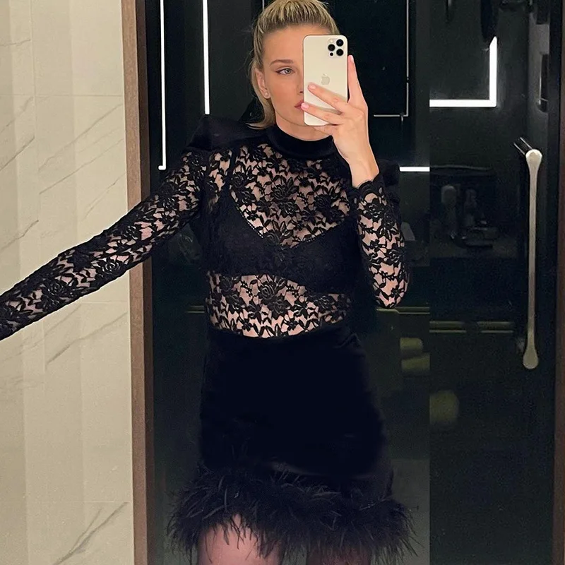 Mozision Lace Print See Through Sexy Mini Dress Women Autumn Winter New Half High Collar Sheer Long Sleeve Bodycon Party Dress