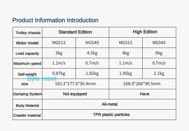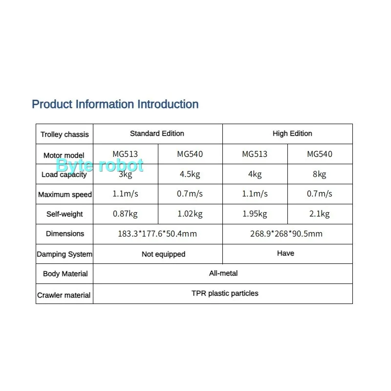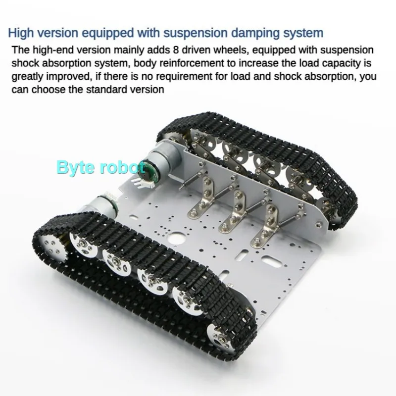 The shock-absorbing version mainly adds 8 driven wheels, is equipped with a suspension shock-absorbing system, the body is strengthened, the load capacity is greatly improved, and the size is also increased.