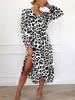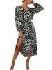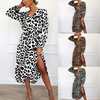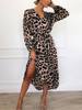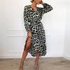 New Autumn Winter Sexy V-neck Leopard Print Long-sleeved Chiffon Dress Fashion Elegant Casual Beach Party Dresses Robe Femme