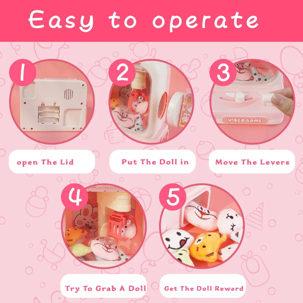 Beautiful lights and cheerful music will be emitted when catching dolls for a greater sense of achievement