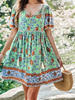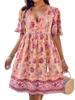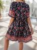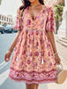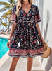 New Women Floral Print Boho Deep V Neck Dress Summer Shor Sleeve Holiday Casual Fashion Dress Robe Female