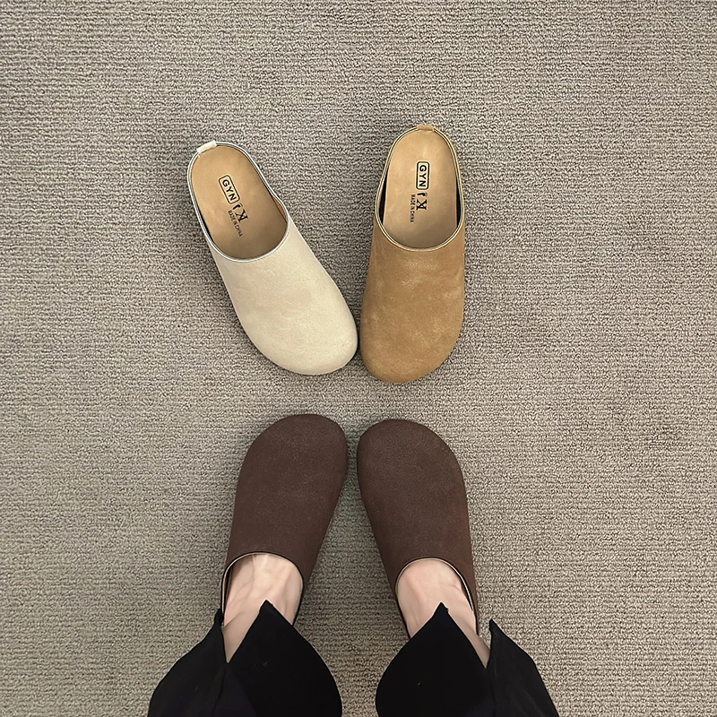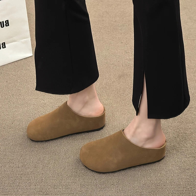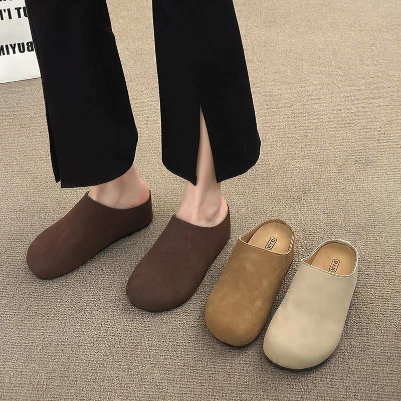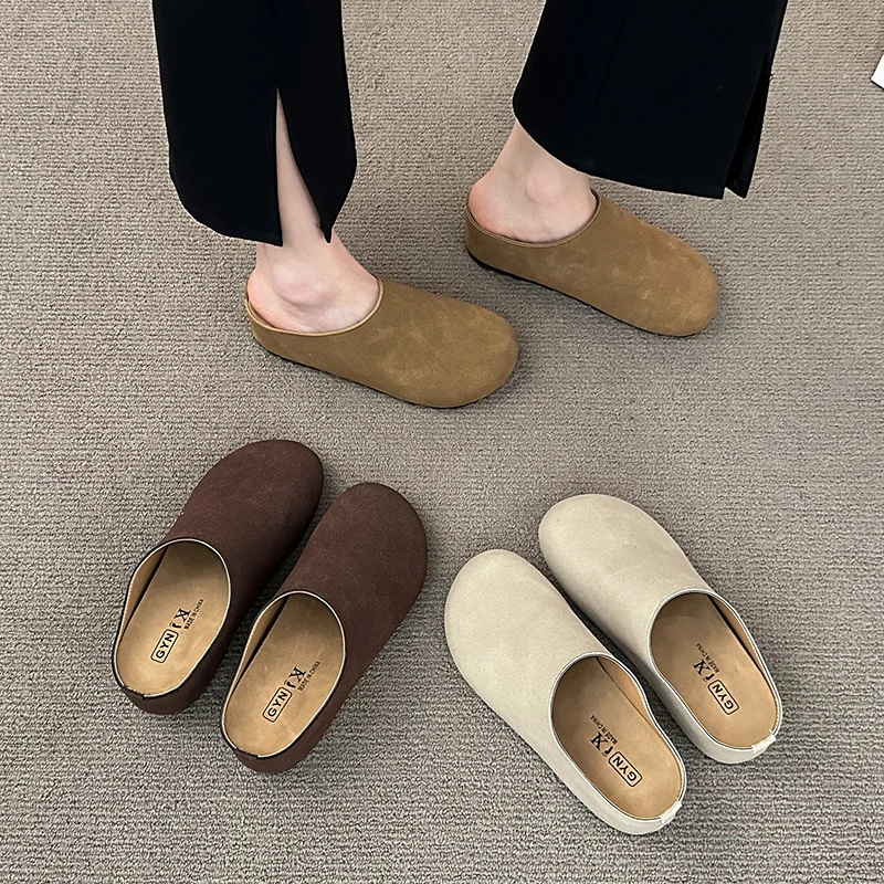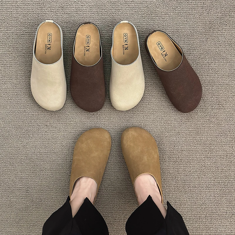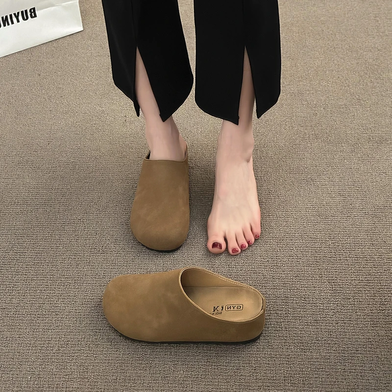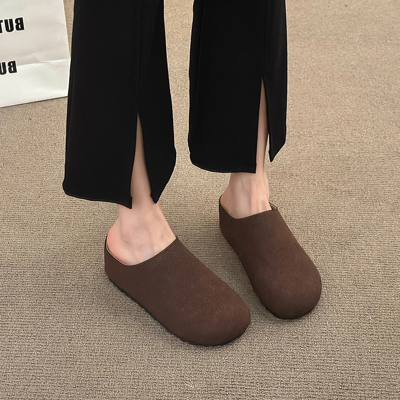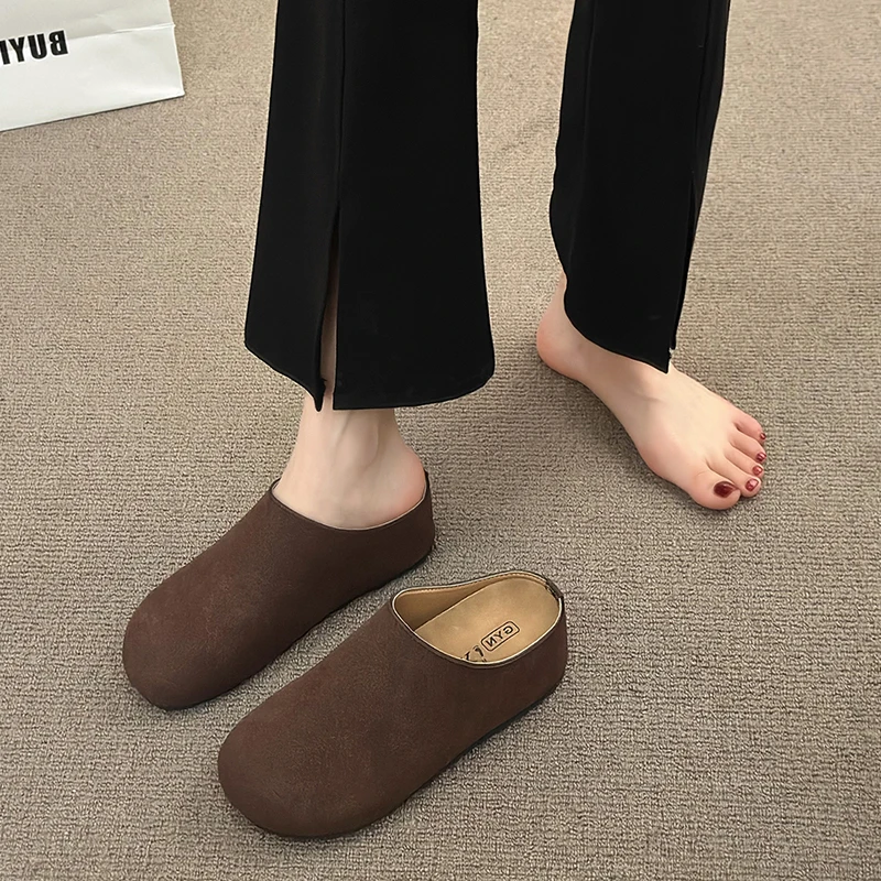 New Women’s Slippers Closed Toe Round Toe Suede Clogs Sandals Autumn New Retro Solid Color Flat Bottom Women’s Slingback Shoes