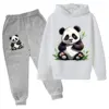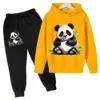 Panda Tuan Yuan Cartoon Painting Boys and Girls Fashion Leisure Sports Hoodie Pant Set Spring Autumn Kid Children Suit
