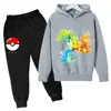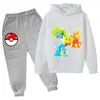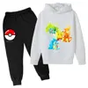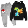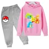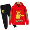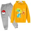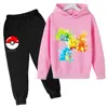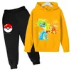 Pikachu Children Girls Sweatshirt Pant Suit Casual Kids Set Boys Pokemon Hoodie Kids Kawaii Tops Children Pullover Sportswear