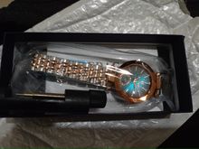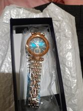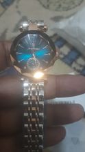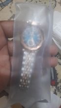 ساعة رائعة منظرها جميل وسوف أشتري منها لاحقا إن شاء الله، تبدو خضراء اللون والسواريبدو لونين متناسقين إنها ساعة يد سوف تكون في المعصم إن شاء الله