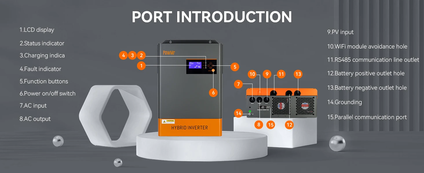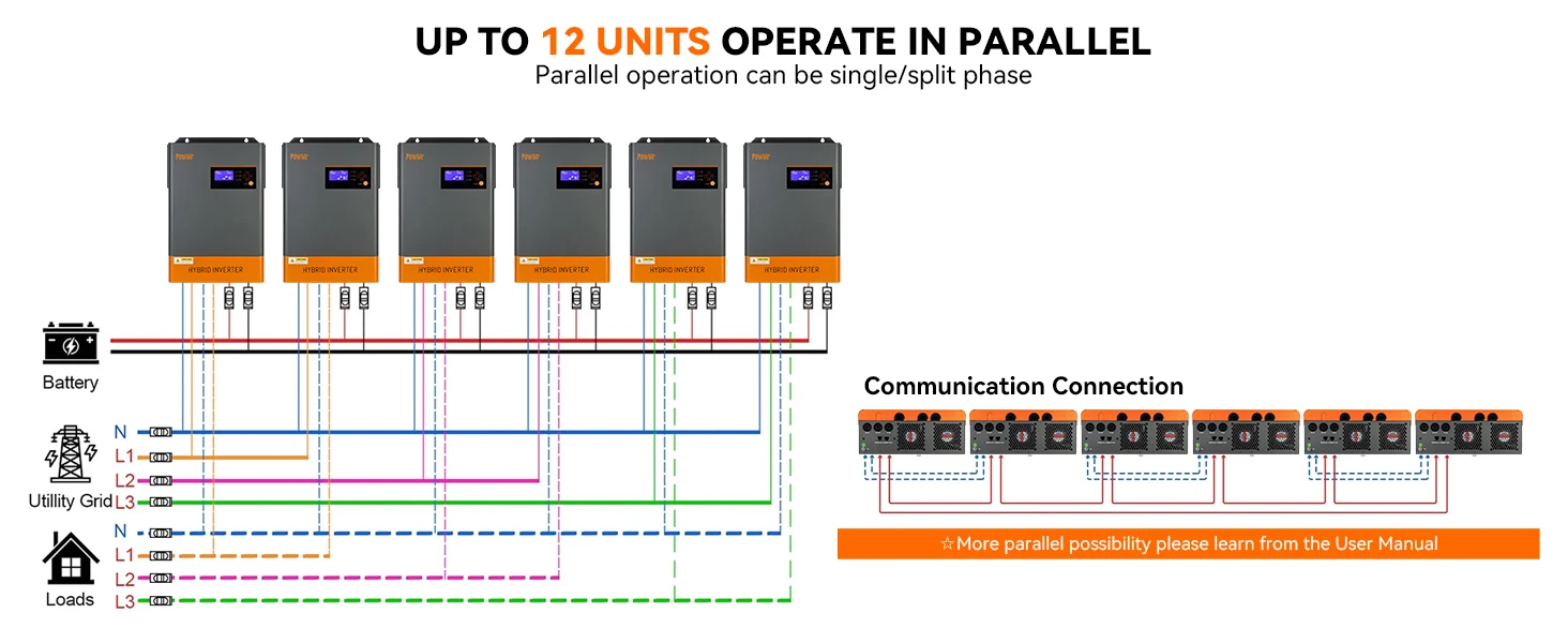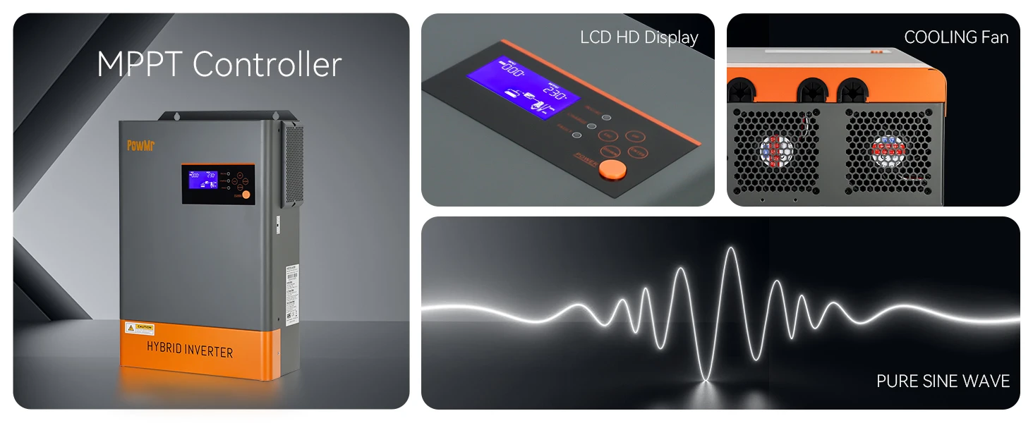 PowMr محول شمسي هجين موازي MPPT ، محول موجة جيبية نقية ، يمكن أن يتوازي في ثلاث مراحل كحد أقصى ، 12 ، 6 كيلو وات ، 48 فولت ، 120A ، W