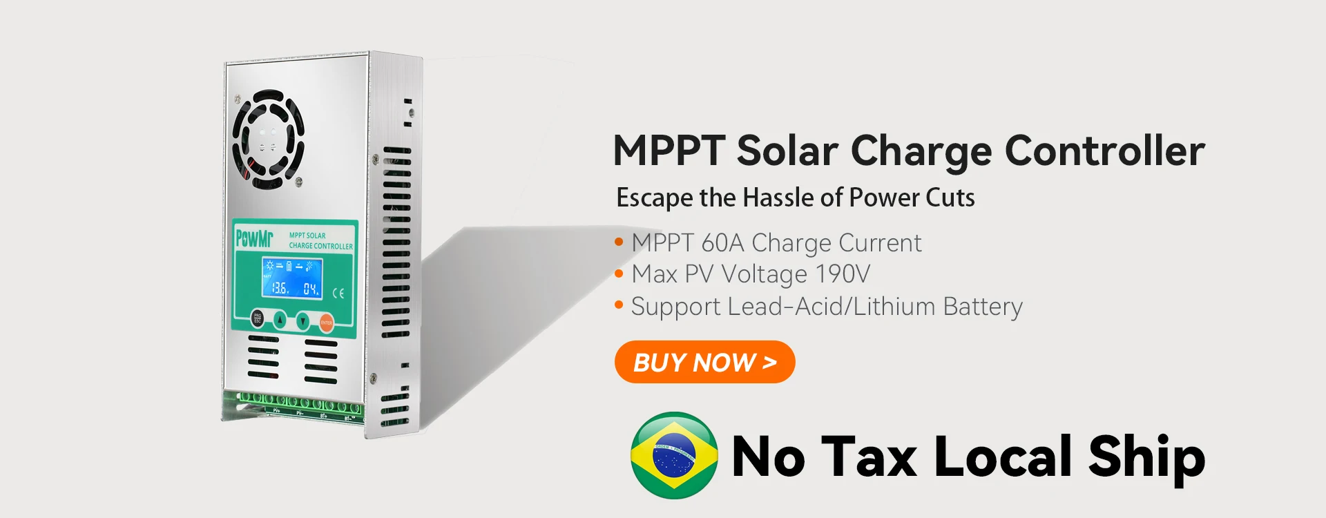EASY WIRING: Press and push forward controller’s cover first, then insert your battery cable and PV cable,