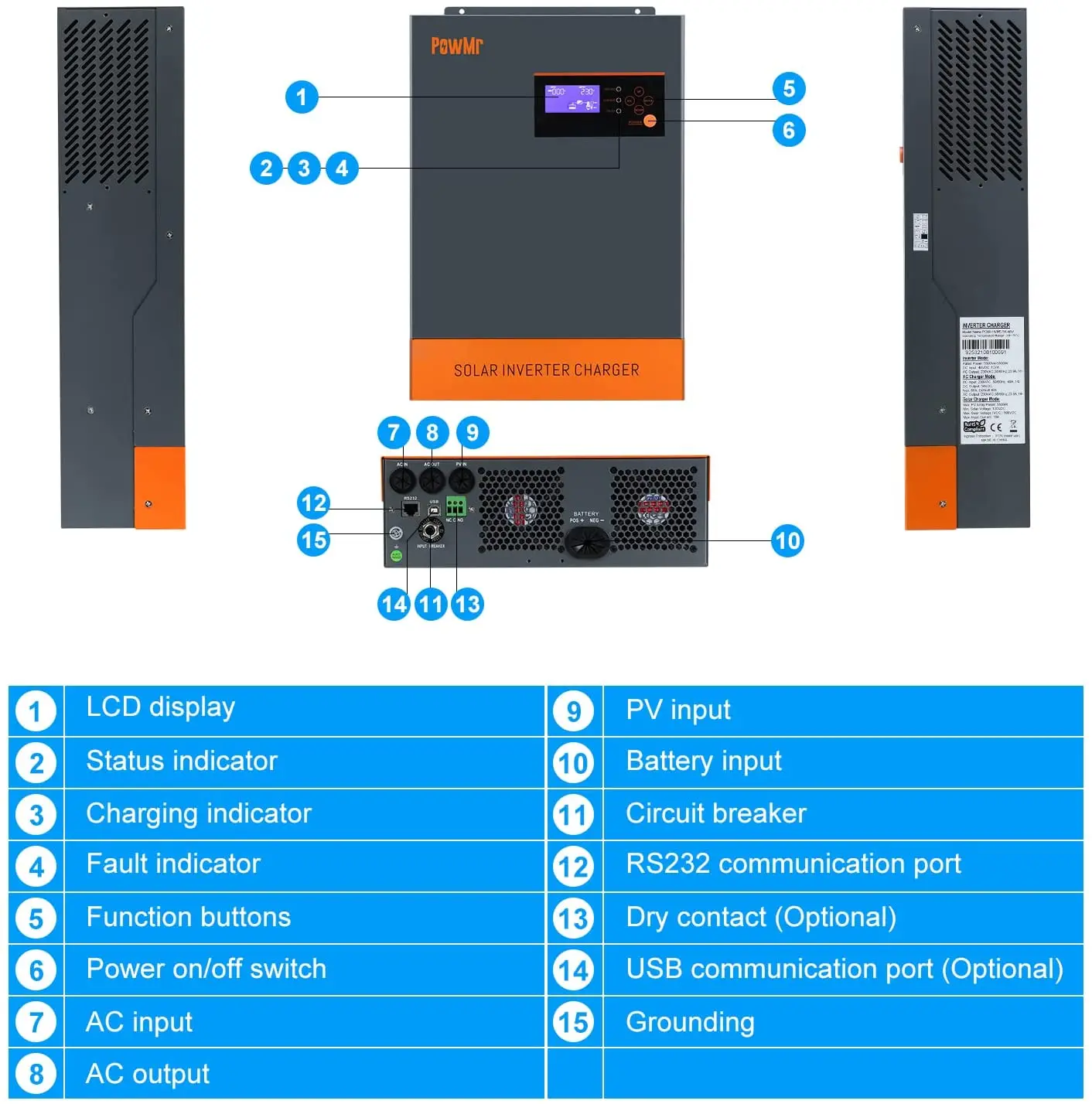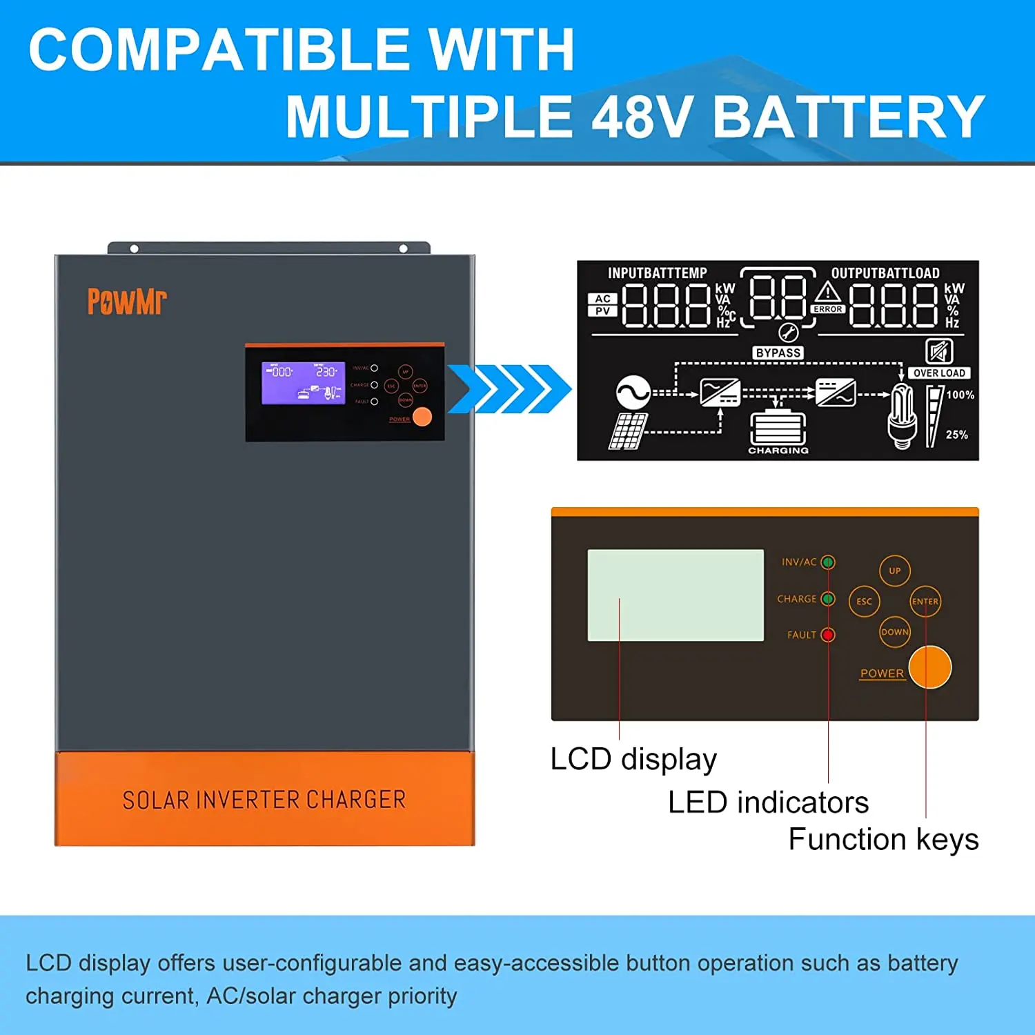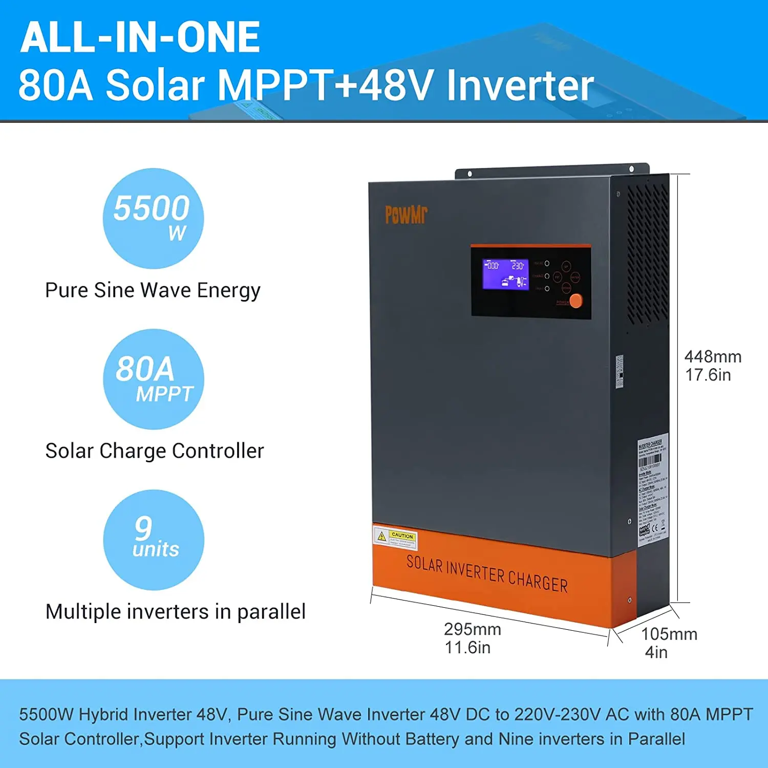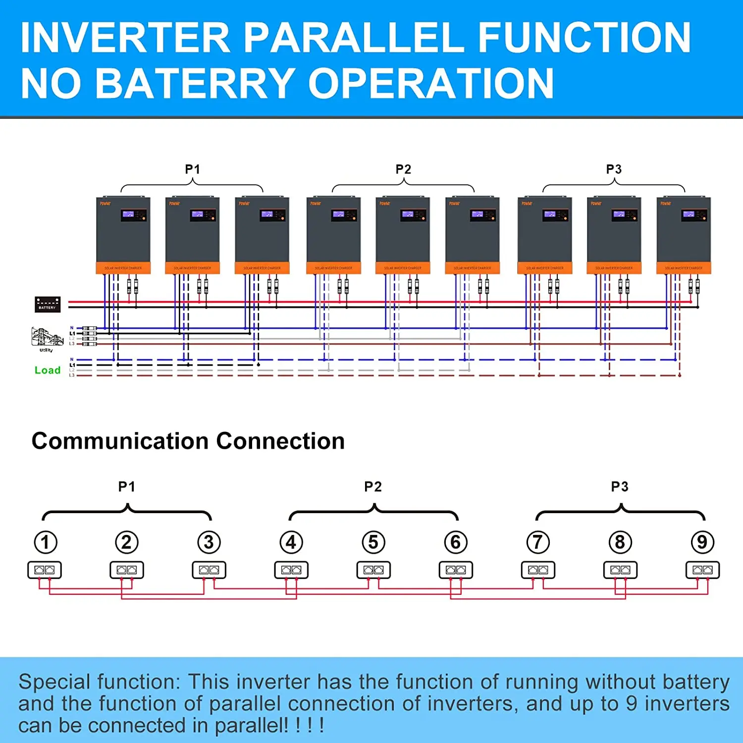 * This is a wide voltage Hybrid inverter. Solar panel input voltage must be higher 150V so that can start up the inverter to work.