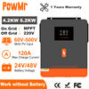 PowMr 3.6KW 4.2KW 6.2KW Hybrid Solar Inverter On Grid Pure Sine Wave Inverter 24V 48V 230V PV Input Max 500vdc MPPT 120A Charger