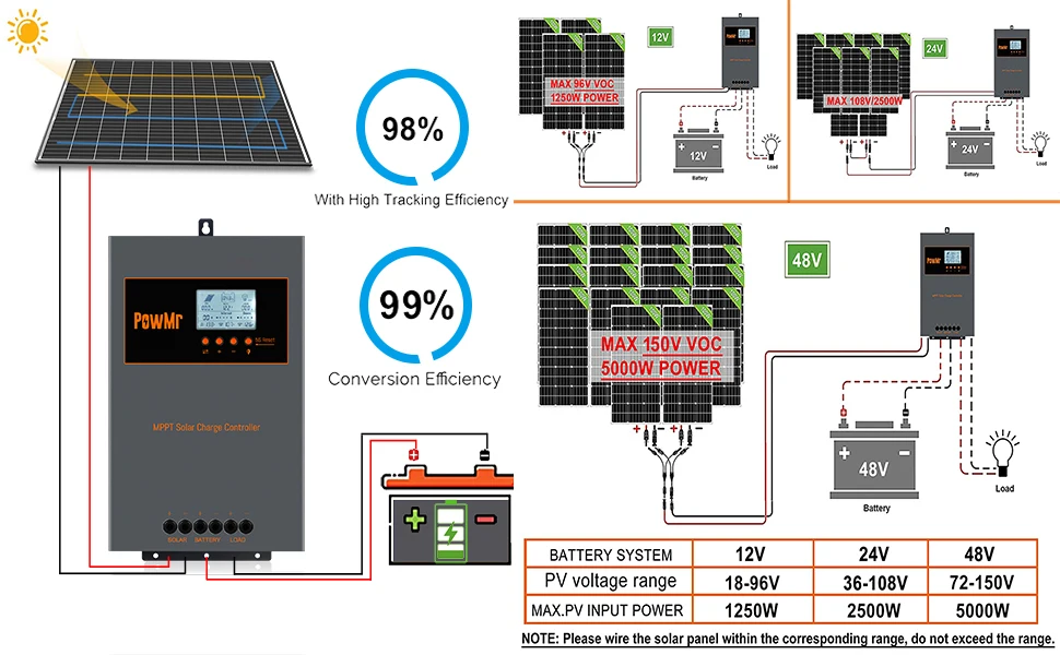 *Advanced Maximum Power Point Tracking (MPPT) technology, with efficiency no less than 99.5%.