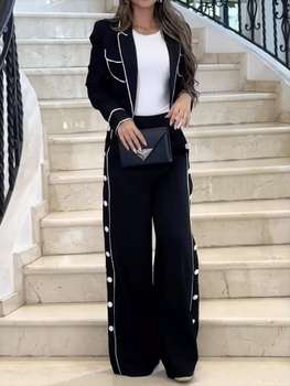 Yeezzi 2024 New Women Fashion Long Sleeves Notched Collar Blazer & High Waist Side Buttoned Pants Urban Office Two Pieces Set